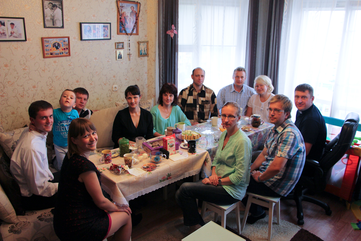 — Новым вітком развіцця нашай духоўнасці стала членства ў суполцы Equipes Notre-Dame. Там мы апынуліся таксама па волі Божай. Я прыйшла на чарговую споведзь у нашу каплічку, пра якую, дарэчы, даведалася зусім выпадкова, гуляючы з каляскай вакол яе. Бачылі нейкую хатку, але лічылі, што гэта нейкая іншая рэлігійная супольнасць, не католікі. А потым нам Данікаў хросны бацька падказаў, што гэта каталіцкая каплічка. І мы пачалі сюды хадзіць, з каляскай блізка і вельмі зручна было. Так вось напрыканцы споведзі кс. Алег запытаў, ці мы з мужам жадаем удзельнічаць у сямейным руху. А за тыдзень да гэтага, пасля чарговай нядзельнай Імшы, у маёй галаве прамільгнула думка, што хацелася б мне духоўнага развіцця. І тут вось.