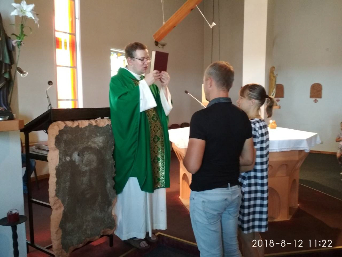 Да шлюбу мы рыхтаваліся, хадзілі на падрыхтоўчыя заняткі ў Чырвоны касцёл, а паралельна гэтым летам з намі быў кс. Андрэй. Ён праводзіў з намі міні-сустрэчы, мы ездзілі ў парк «Сонечная даліна» у Курасоўшчыне. Выпрабоўваў нас у розных сітуацыях, глядзеў на колькі ў нас усё сур’ёзна, свядома. Бог нас быццам вёў праз яго сваёй нябачнай рукой, нібы атуляў нейкім коканам клопату, бяспекі. Шлюб мы бралі ў Чырвоным касцёле і благаслаўляў яго ксёндз Андрэй Санько.