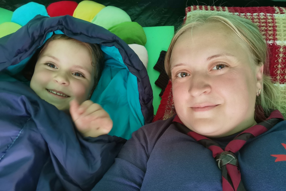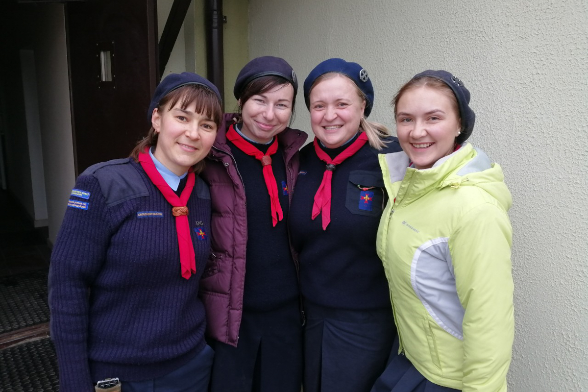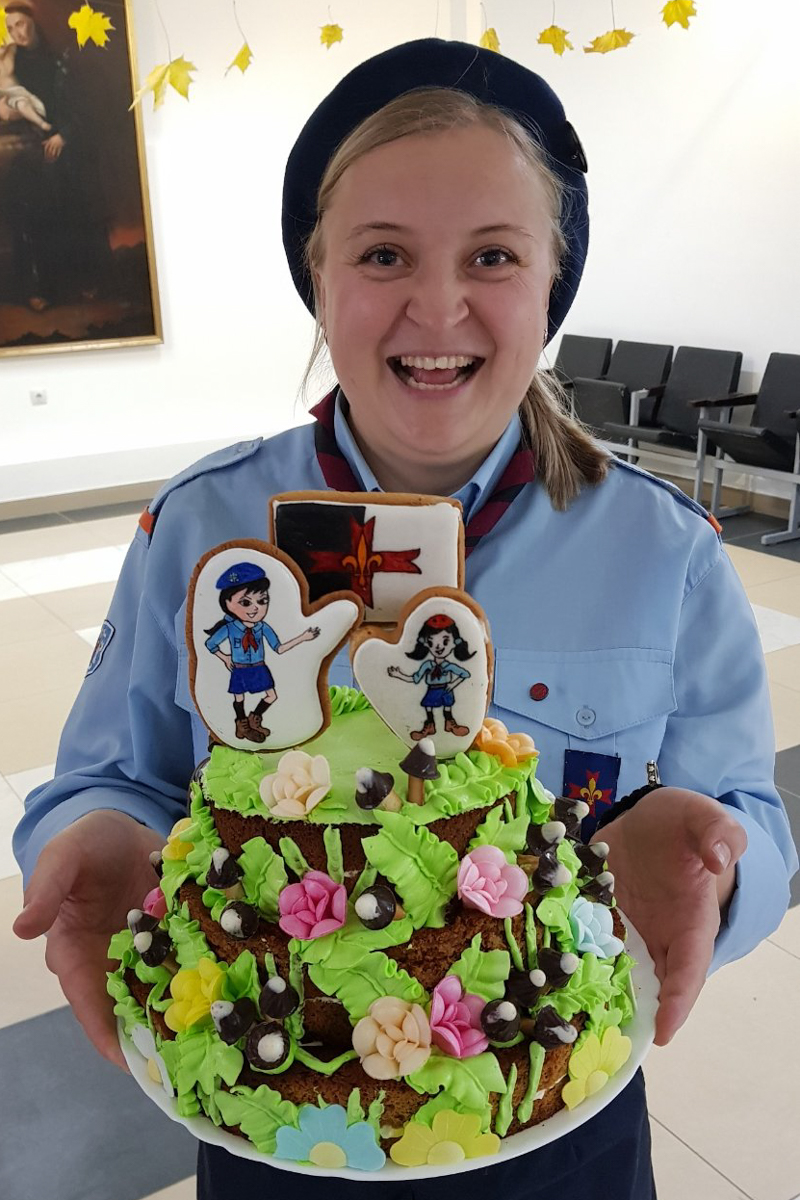 — Як і ўсё ў маім жыцці: «Оп!». А потым пачынаем разбірацца (смяецца). Да скаўцкага руху я далучылася адразу, як толькі ён з’явіўся ў нашай парафіі. Старшай дачцы Ілоне было год 12-13. Прыйшлі скаўты, рэкламавалі сябе. І трэба было такому здарыцца, што мы былі на гэтай Імшы разам. Малодшай, Ульяне, на той момант было прыкладна каля года. Стаю сабе, думаю: «Трэба Ілону запісаць, каб па вуліцах не бадзялася. Тут павінна быць цікава». Скончылася Імша, кажу: «Гэта ж так цікава, праўда?» А яна мне: «Не. Неяк дзіўна». Стаім, размаўляем, я разумею, што нічога не атрымліваецца. І тут да нас падыходзіць ксёндз Уладзімір і кажа: «Ну што, Ілонка, ідзём у скаўтынг!» Ілонка: «Не, не!» «Як не? — кажа ксёндз, — мама ідзе ў скаўты, будзе шэфам Божых каровак. А ты не?» Я ў абсалютным здзіўленні! Стаю, сама сабе думаю: «Гэта зусім не наша тэма». Але сказаць «не» не магу, бо побач Ілона. Мяркую: «Некалькі разоў прыйду, а потым скажу, што не атрымліваецца, бо дзіця яшчэ малое».