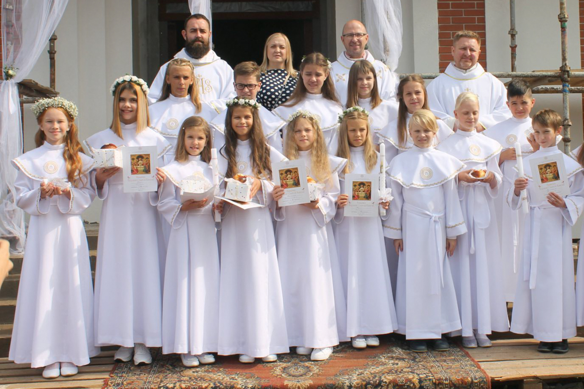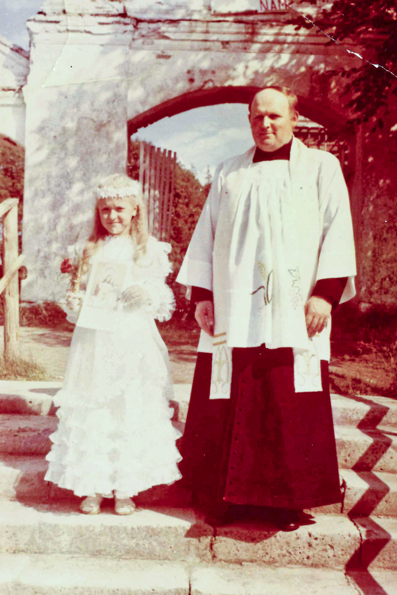 Нас пачалі рыхтаваць да Першай Камуніі. Мы не разумелі, чаго ад нас хочуць: усе малітвы па-польску. Вучыць пацеры было цяжка, для мяне гэта было, як кітайская мова. Першую Камунію прыняла пасля другога класа. Памятаю такі цікавы момант: у ксяндза была такая “традыцыя” — пасля ўрачыстасці пытацца ў дзяцей, хто пойдзе ў ксяндзы ці сёстры законныя. У нас ён таксама спытаў. З хлопцаў хтосьці руку падняў, а з дзяўчат ніхто. І я думаю: «Бедны, гэта яму ж так няёмка зараз, ніхто ж не падымае рукі!». І я, каб яму не было так няёмка, падняла руку (смяецца). Пазней я гэты момант ўспамінала, калі была ў законе ў сясцёр.