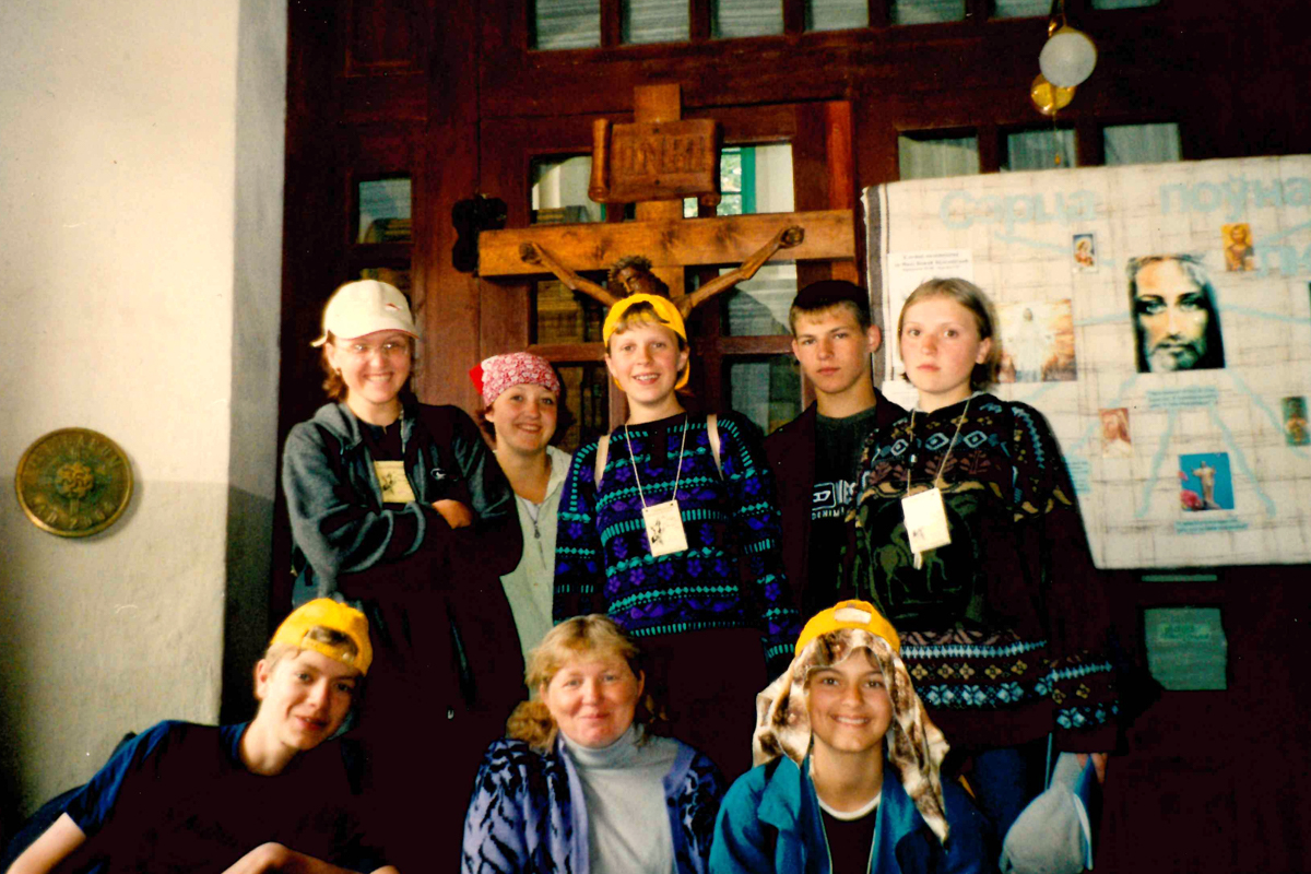 А далей, на самай справе, склаліся неверагодна абставіны, сустрэліся невыпадковыя людзі… Да нас прыйшла працаваць катэхеткай Марына Емельяновіч, яна і да гэтага часу служыць катэхеткай. Гэта той чалавек, які цалкам аддаваў сабе працы. Я на той час ужо паступіла ў мастацкае вучылішча ў п.г.т. Мір (зараз Мірскі дзяржаўны мастацкі прафесіянальна-тэхнічны каледж – заўв. аўтара), мне было 16 гадоў. Марына здолела мяне зацікавіць. Яна ўсіх нас сабрала ў адзін кагал. Мы да яе прыходзілі, ужо будучы студэнтамі. У Вялікі пост для таго, каб моладзь не хадзіла на дыскатэкі, яна ладзіла цікавыя сустрэчы на плябаніі: мы не ішлі ў клуб, а ішлі туды.