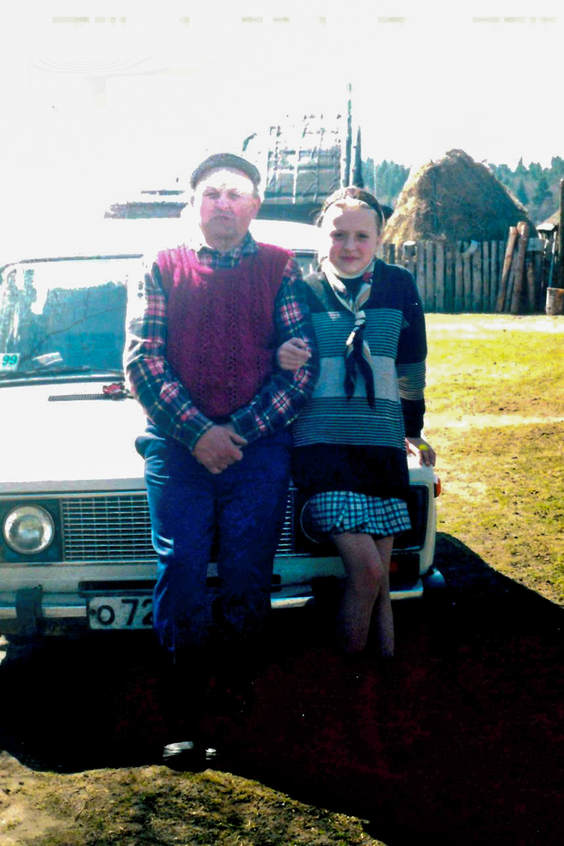 — Гэта мой дзядуля. Бацька таты, дзед Валент — Валянцін. У нядзелю, нягледзячы ні на што, ён апранаў свае прыгожыя боты, штаны, белую кашулю, камізэльку, пінжак і кепку. Сядаў на ровар. Адну калашыну заўсёды зашпільваў прышчэпкай. І ехаў у касцёл. І ў якім узросце я б не была, чым бы на той момант не займалася ў касцёле, я ведала, што там, недзе каля дзвярэй, ёсць ён. Сядзіць і глядзіць на мяне. І, калі скончвалася Імша, усе людзі выходзілі і ён таксама мог выйсці, але стаяў і чакаў мяне. А я выйду, пацалую яго ў лысіну, а ён штосьці прабурчыць у адказ, хаваючы за гэтым сваю чуллівасць.