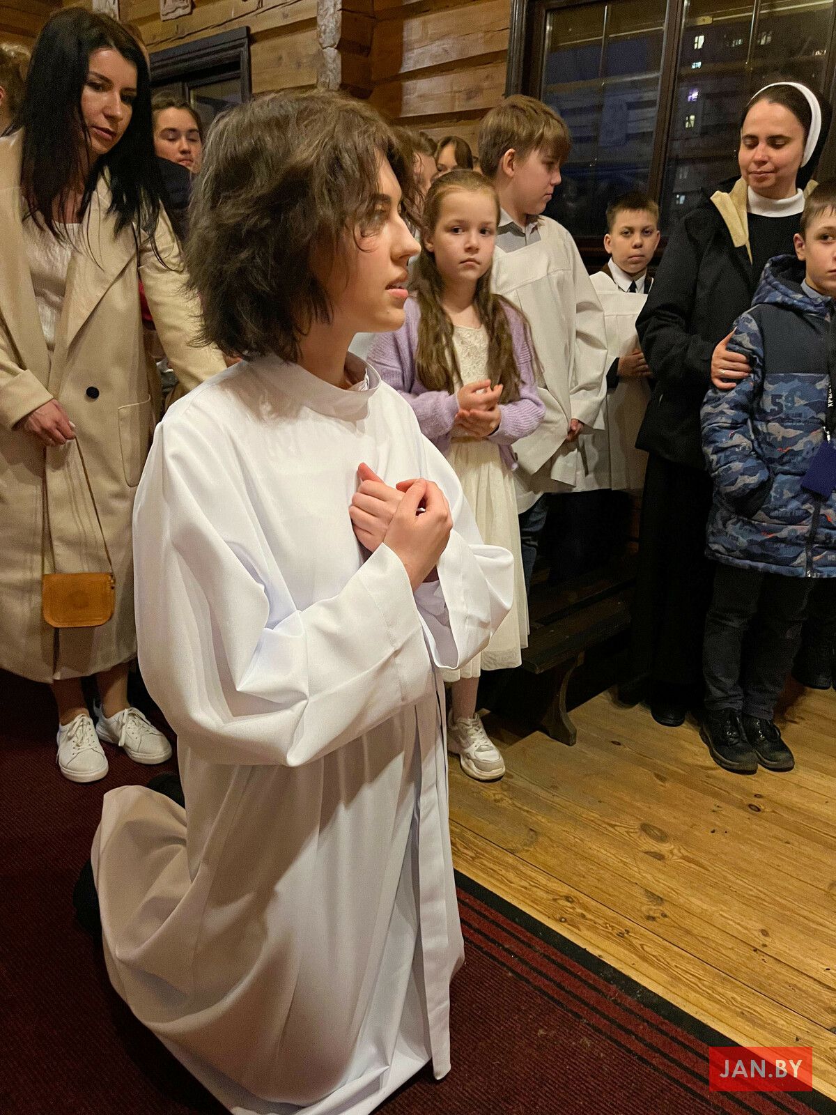 Найбольш засяроджанымі стараюцца быць вернікі ў момант прыняцця Святога Цела Хрыста, асабліва ў Вялікі чацвер — дзень устанаўлення сакрамэнта Эўхарыстыі Езусам Хрыстом на Апошняй Вячэры. У парафіяльнай супольнасці ў такі важны і літургічна багаты дзень была яшчэ адна нагода для радасці. Ксенія Харук, маладая парафіянка, пасля адпаведнай падрыхтоўкі першы раз у жыцці прыняла Найсвяцейшы Сакрамэнт у сваё сэрца.
