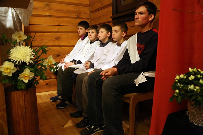 вернiкi з удзячнасцю адказваюць «Дзякуем Богу» i запальваюць ад пасхала