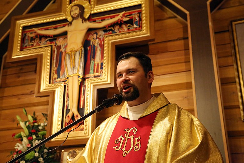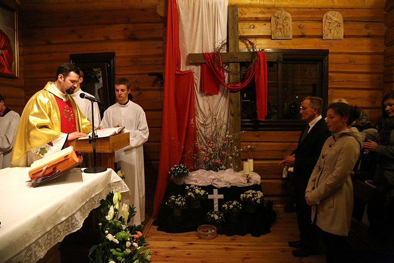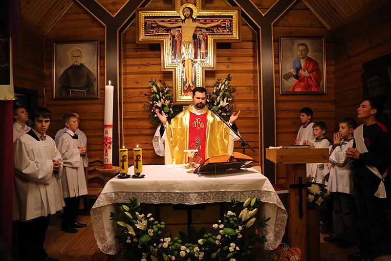 у касцёл, дзе патушана святло. Святар тройчы спявае «Святло Хрыстова», а