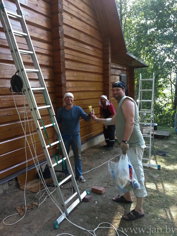 Хацеў бы вельмі шчыра падзякаваць нашым парафіянам, якія сёння, ў гэты вельмі спякотны дзень, ахвяраваліся і памалявалі звонку нашую капліцу.