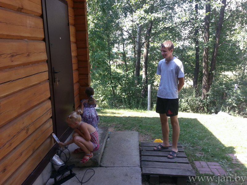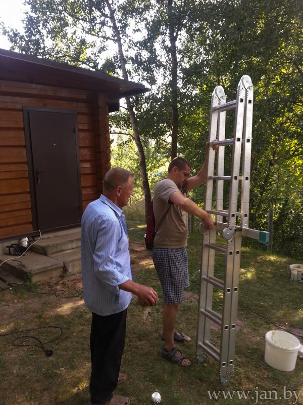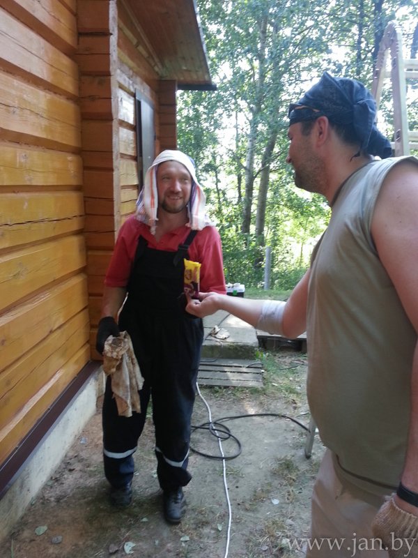 Перш за ўсё шаноўным: пану Віталію Маісееву і Міхалу Яроцкаму. Яны, увесь дзень, у сонцапёке фарбавалі нашую капліцу. Дзякую пану Віктару Жаку за яго дапамогу, а асабліва хацеў бы падзякаваць, нашым меншым парафіянам, якія вялікімі намаганнямі дапамагалі ім у гэтым. Анне Лукомскай, Марце і Маше Маісеевым. Яны, ўласным прыкладам сведчылі аб тым, як трэба працаваць пры капліцы - прыносячы і падаючы ваду, чысцючы і выціраючы сцены - прыгатаўляючы іх да пафарбавання. Дзякую таксама Надзеі Яроцкай, якая далучылася да нас і дапамагала пры прыгатаванні дрэва.
