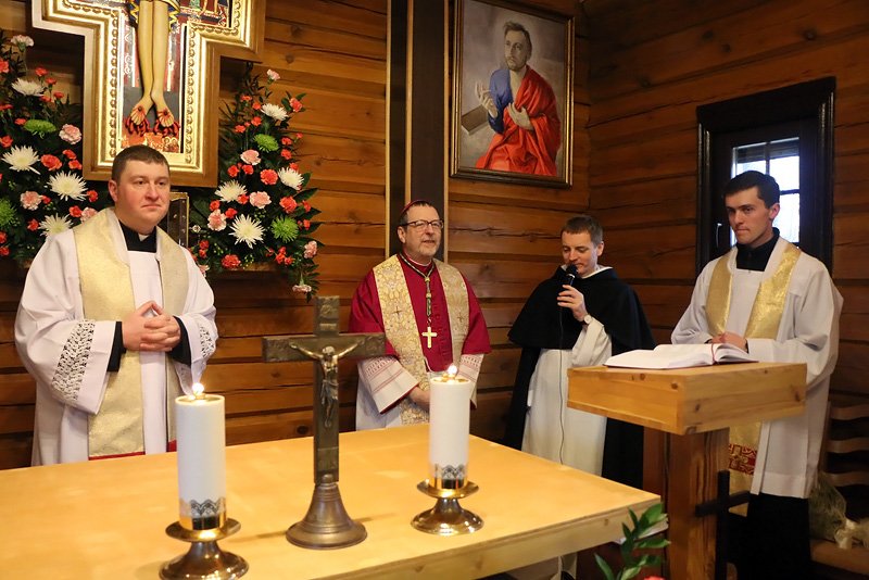 Раніцай у Вялікую суботу Апостальскі Нунцый арцыбіскуп Клаўдыё Гуджэроцці наведаў нашу парафію і асвяціў велікодныя стравы.
