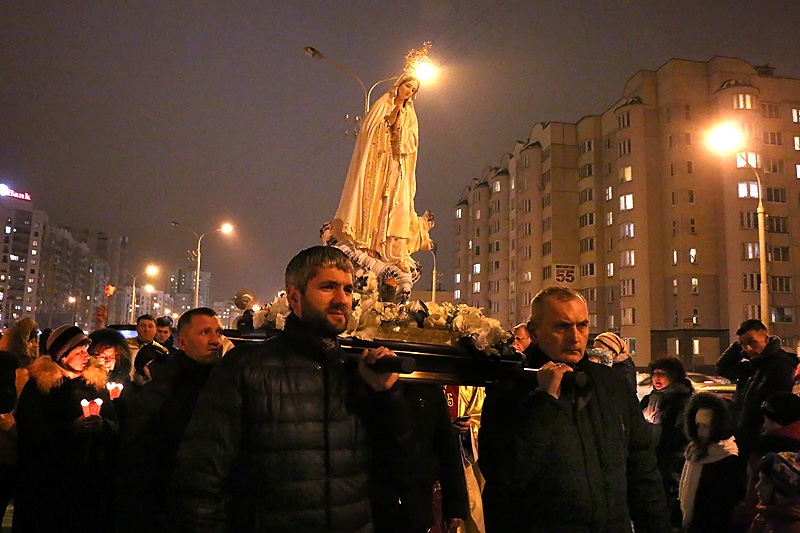 З нагоды 100-годдзя фацімскіх аб’яўленняў у Беларусі адбываецца перэгрынацыя фігуры Маці Божай Фацімскай. Увечары 23-га студзеня фігура Маці Божай завітала ў нашу парафію.