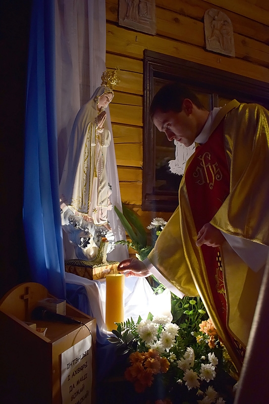 Літургія адбывалася ў духу яднання з Маці Марыяй. На прыканцы была Адарацыя Найсвяцейшага Сакрамэнту, падчас якой мы супольна перапрашалі, дзякавалі і прасілі Маці Фацімскую ў розных патрэбах нашых сем’яў і нашай парафіі.