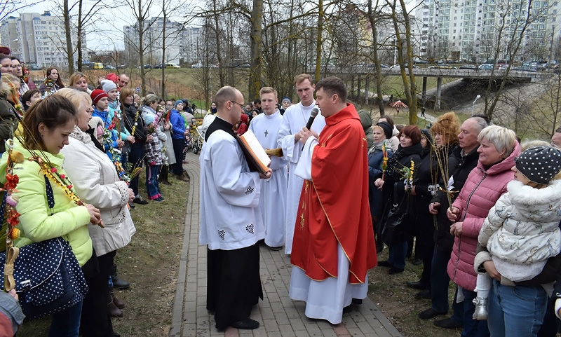 Пальмовая нядзеля распачынае ў Каталіцкім Касцёле Вялікі тыдзень. У гэты дзень у літургіі ўзгадваецца ўрачысты ўваход Езуса Хрыста ў Ерузалем за пяць дзён да Яго ўкрыжавання. Як пішуць eвангелісты, людзі з натоўпу, якія віталі Хрыста, слалі на дарозе свае вопраткі, а таксама аліўныя і пальмавыя галінкі, усклікаючы пры гэтым: «Гасанна! Благаслаўлёны той, хто прыходзіць у Імя Пана».