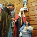 Традыцыйна на Каляды дзеці паказваюць батлейку - тэатральную сцэнку па евангельскіх матывах Божага Нараджэння. Сёлета да акторскага складу далучыліся і дарослыя. А вось ролю нованароджанага Езуса сыграла сапраўднае немаўля - маленькі Габрыэль.