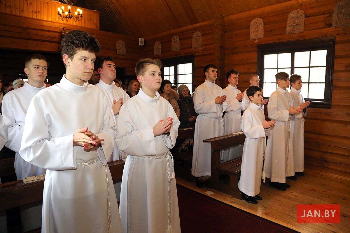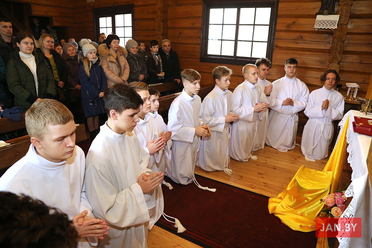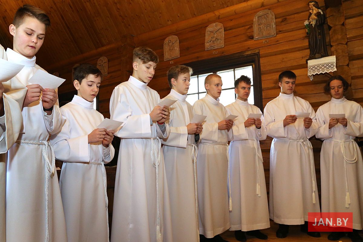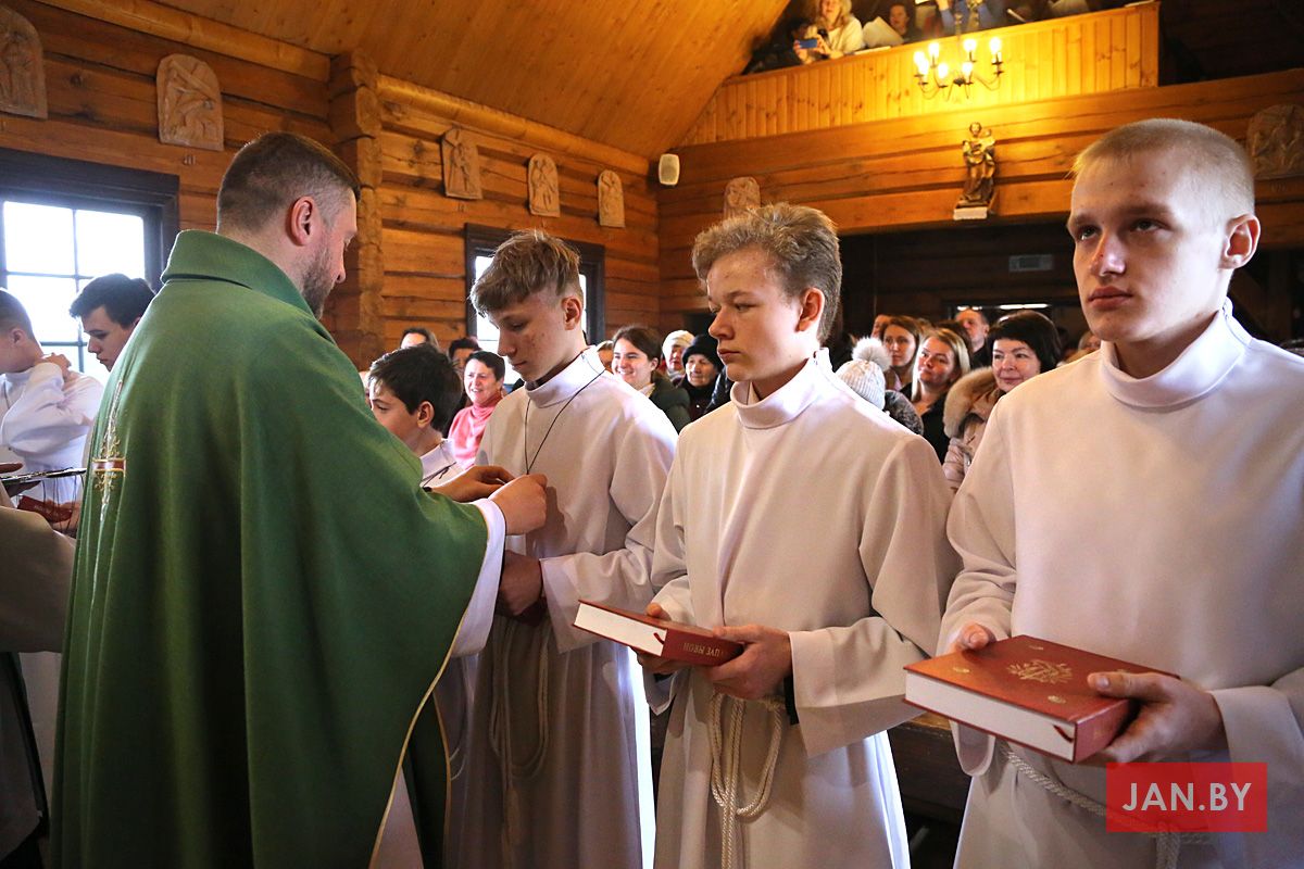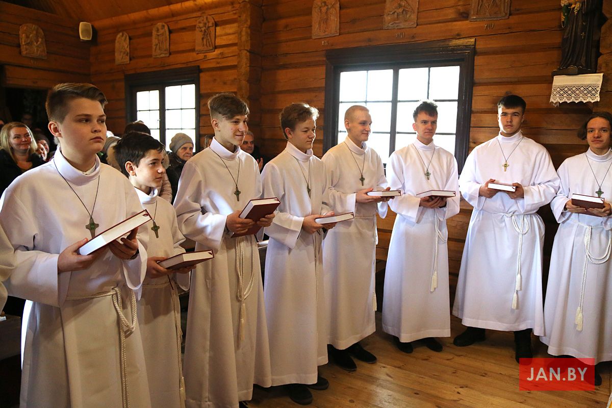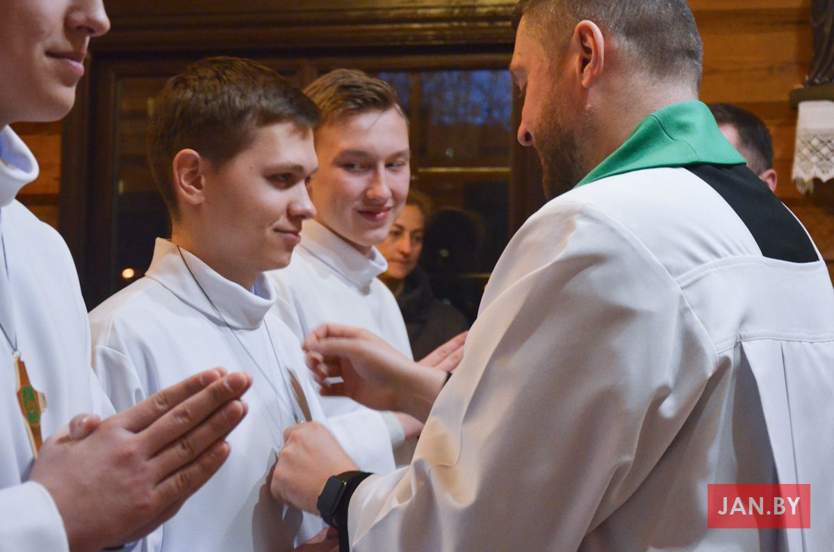 23 лютага сапраўднае свята перажывалі хлопцы Літургічнай Службы Алтара (ЛСА) нашай парафіі: 10 кандыдатаў сталі міністрантамі, 13 юнакоў былі ўведзены ў паслугу лектараў, чацвёра лектараў перайшлі на наступную прыступку іерархіі, атрымаўшы залатыя крыжы, і яшчэ 10 хлопцаў сталі кандыдатамі ў міністранты. Астатнія аднавілі міністранцкія абяцанні.