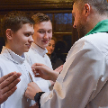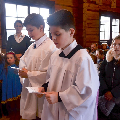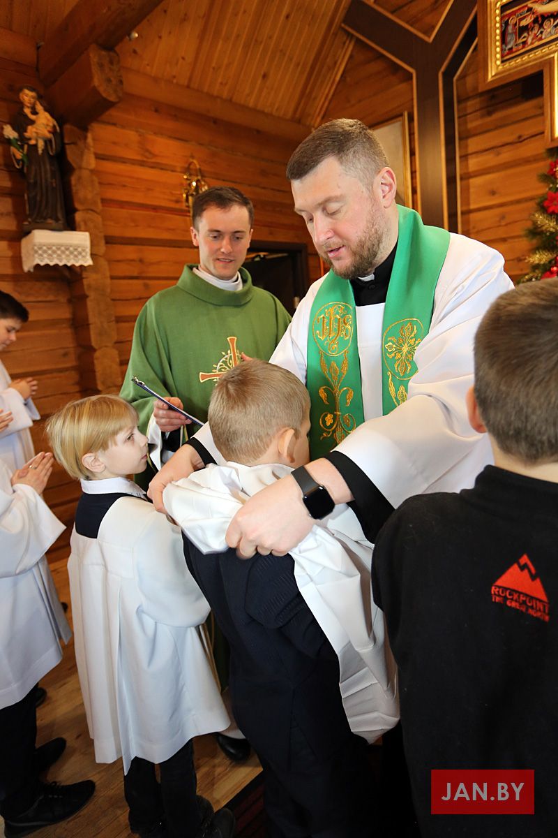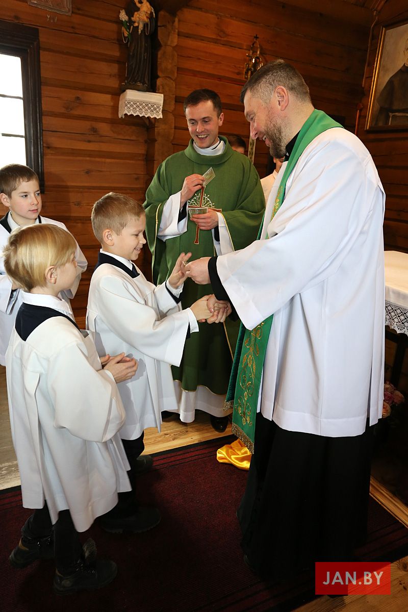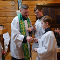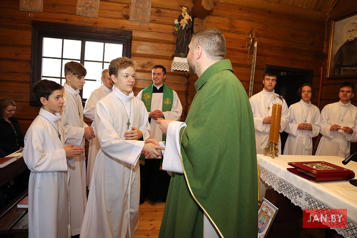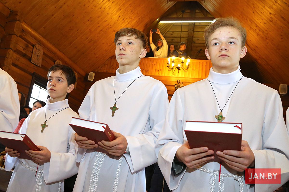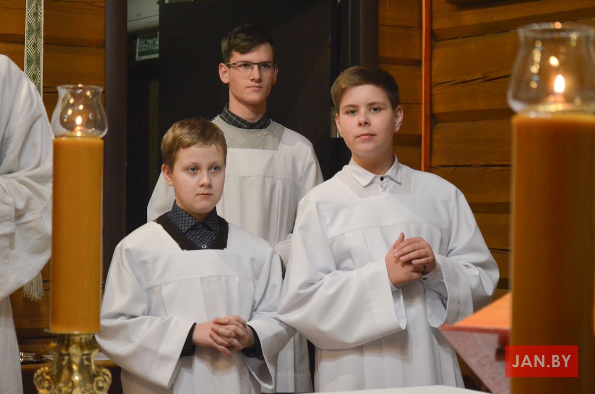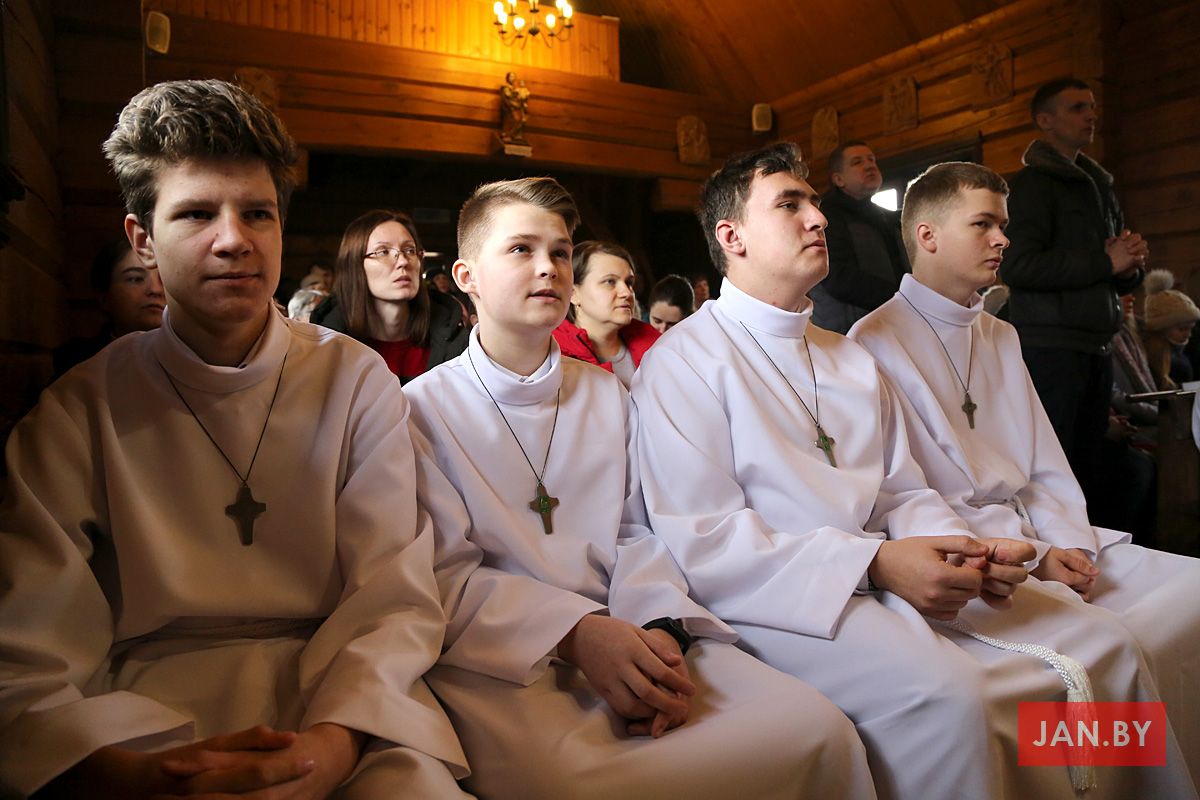 23 лютага сапраўднае свята перажывалі хлопцы Літургічнай Службы Алтара (ЛСА) нашай парафіі: 10 кандыдатаў сталі міністрантамі, 13 юнакоў былі ўведзены ў паслугу лектараў, чацвёра лектараў перайшлі на наступную прыступку іерархіі, атрымаўшы залатыя крыжы, і яшчэ 10 хлопцаў сталі кандыдатамі ў міністранты. Астатнія аднавілі міністранцкія абяцанні.