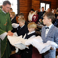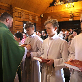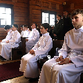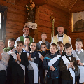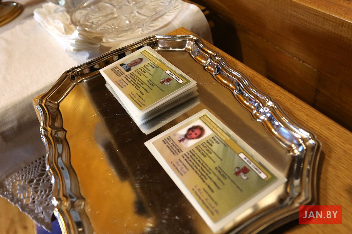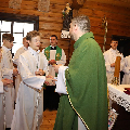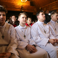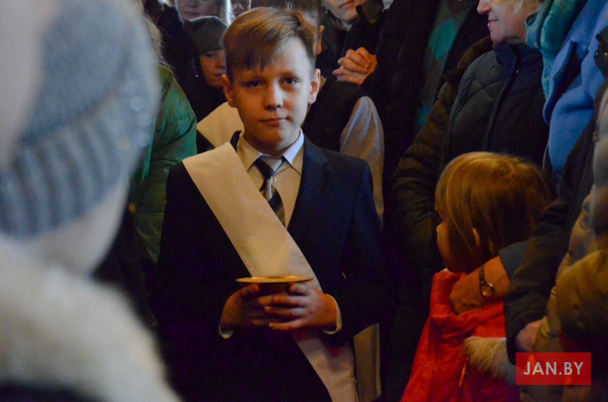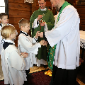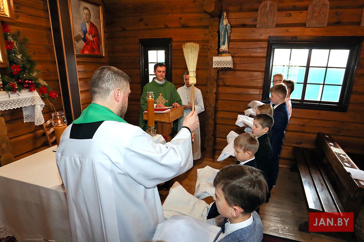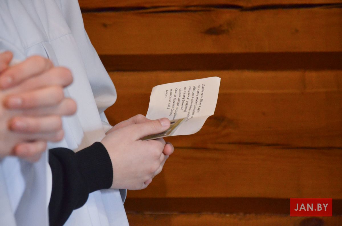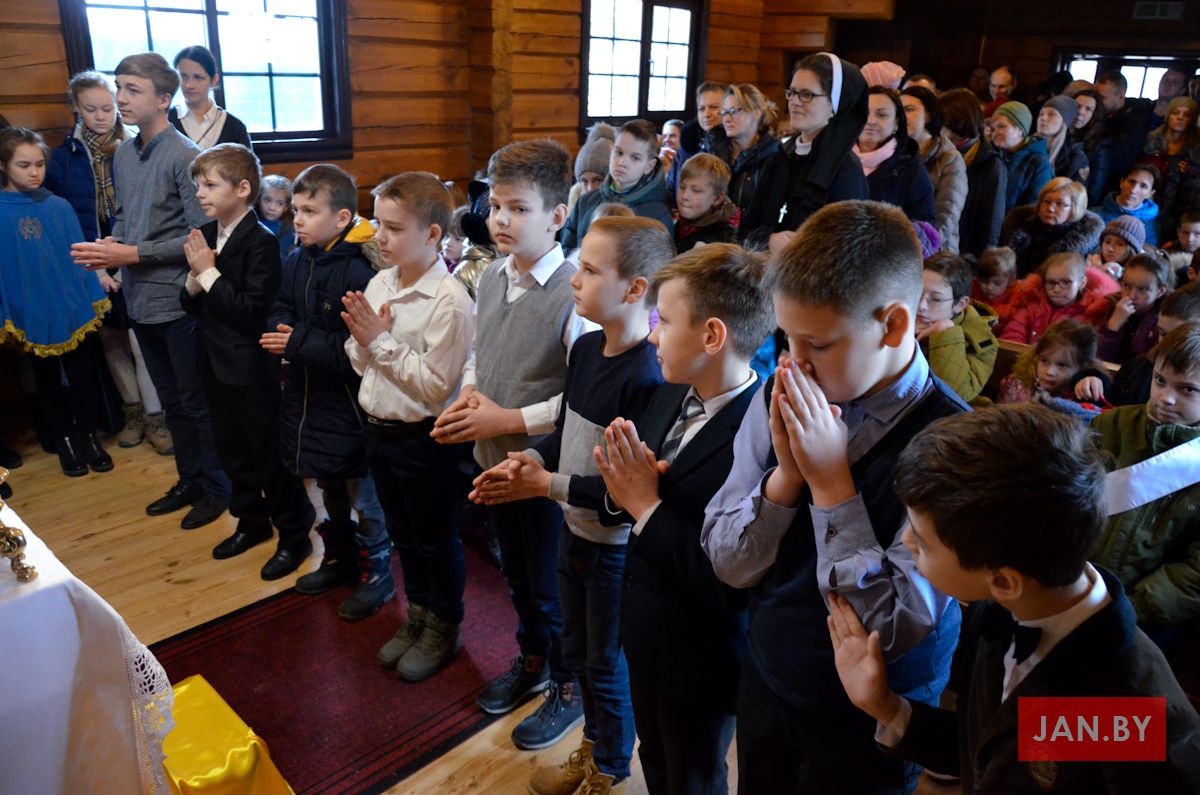 Сёння мелі гонар упершыню надзець стужкі кандыдатаў у міністранты 10 хлопцаў. Белы колер стужак будзе нагадваць ім пра чысціню душы, якая неабходна для жыцця вечнага. Гэтыя хлопцы толькі распачынаюць шлях трывання літаральна побач з Богам.