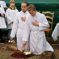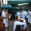 Узгадаем таксама сёння словы святога Яна Паўла ІІ, пятнаццатую гадавіну са дня смерці якога нядаўна ўспаміналі. У Вялікі чацвер Папа аднойчы разважаў над словамі прарока Ісаі, які кажа: «Намасціў мяне Гасподзь» (Іс 61, 1). Яны нагадваюць «перш за ўсё аб місіі Езуса, асвячонай моцай Святога Духа, які стаў Найвышэйшым і Вечным Святаром Новага Запавету, запячатаным Крывёю. Усе прароцтва старазапаветнага святарства выконваюцца ў Ім, адзіным і апошнім пасярэднікам паміж Богам і людзьмі».