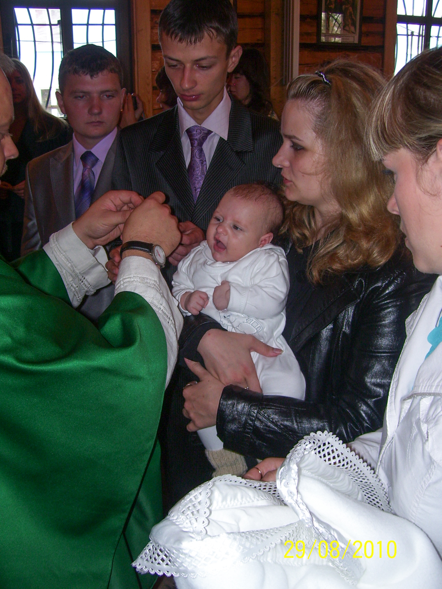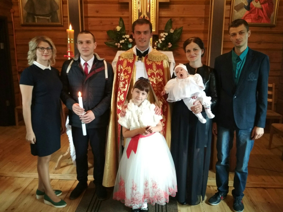Але неяк мы забіралі аднекуль майго дваюраднага брата, які таксама з Геранёнаў і жыве ў Мінску з сям’ёй. Ён тады рыхтаваўся да сакрамэнту сужэнства. Я спытала, куды яны ходзяць на падрыхтоўку, а ён адказвае: «А ты што, не ведаеш, што тут на Матусевіча ёсць капліца, там служыць наш ксёндз Уладзімір Марушэўскі». Мы вучыліся ў адной школе, і я, канешне ж, ведала ксяндза Уладзіміра, хаця хутчэй як Валодзю Марушэўскага (смяецца). Ведала, што ён абраў шлях святарства, што вучыўся ў Познані. Але потым сцежкі неяк разышліся, і мы адно пра аднаго нічога не ведалі. Пазней я стала аналізаваць і зразумела, што ён ужо напэўна пачаў дзесьці працаваць — так і супала. У брата я ўзяла кантакты ксяндза Уладзіміра, і, так як у мяне тады толькі нарадзілася другая дачка Аліна, мы з будучымі хроснымі бацькамі прыйшлі на навуку перад хростам дзіцяці ў капліцу. І вось з той пары мы ўжо рэгулярна ходзім ў нашую парафію.