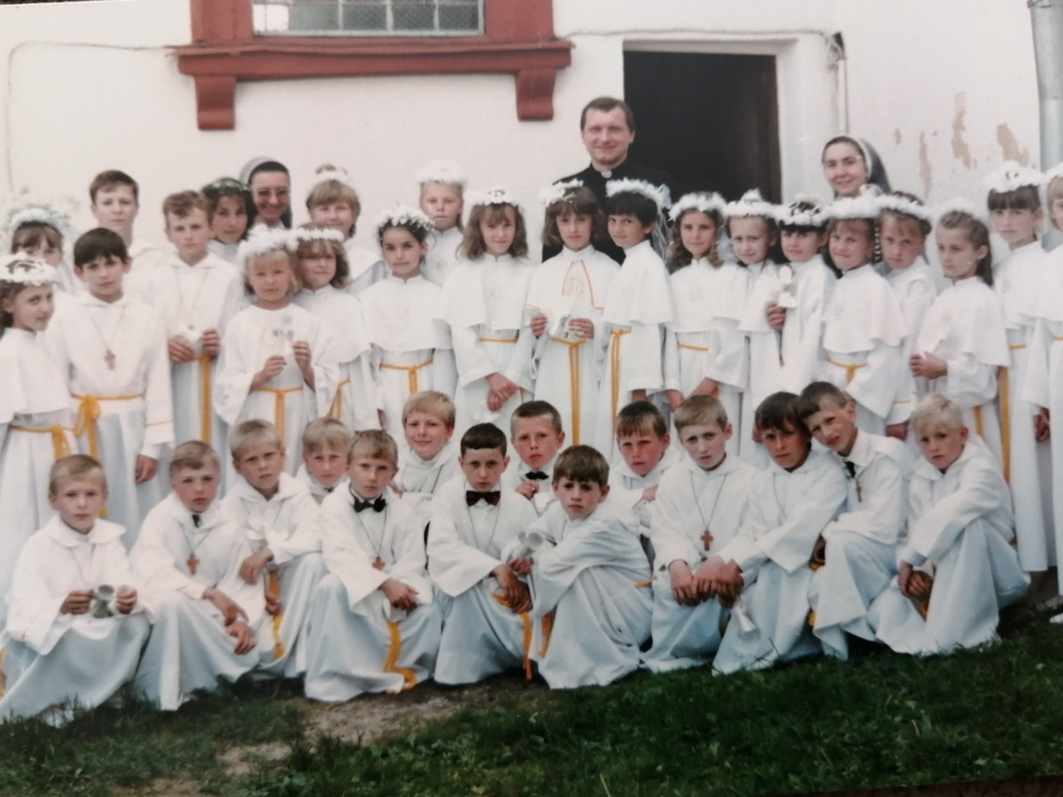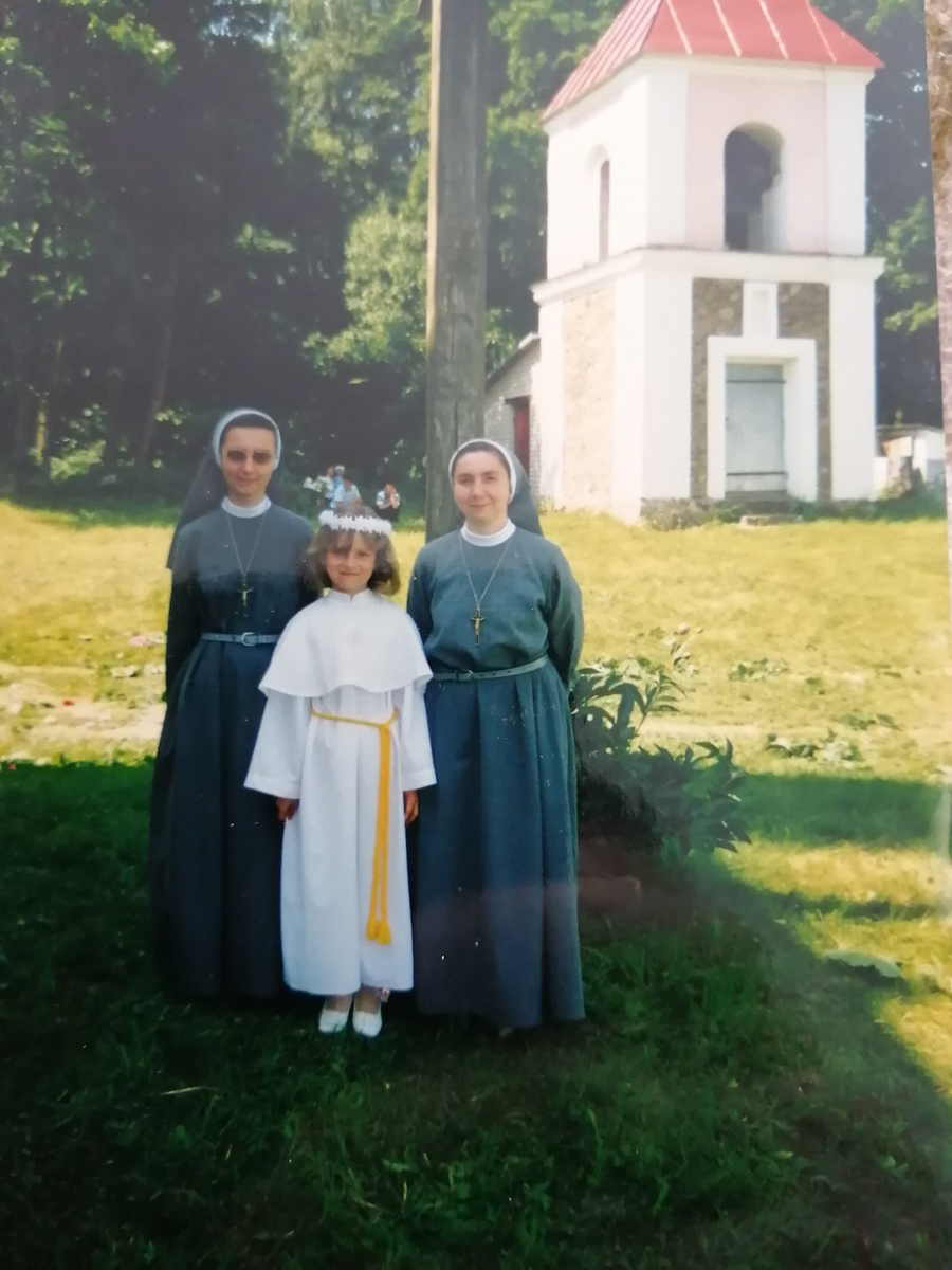 — Гэта выйшла даволі проста, прычым яшчэ ў дзяцінстве. Паколькі мы жылі ў вёсцы, дзе праваслаўнай святыні няма, толькі касцёл св. Мікалая, ды і большая частка насельніцтва была менавіта католікамі, то ўсе мае сябры-аднакласнікі хадзілі туды і на Імшу, і на катэхезу, прычым цэлымі паралелямі — вось як у школу на ўрокі. Мне вельмі хацелася з імі. Я неяк сказала маме: «Мама, як думаеш, тата не пакрыўдзіцца, калі я пайду ў касцёл?». А яна мне адказала, каб я сама з ім паразмаўляла. Я так і зрабіла. Спытала ў яго: «Тата, царквы ў вёсцы няма, ты сам туды рэдка ездзіш. Можна я буду разам з іншымі хадзіць у касцёл?». Ён дазволіў, сказаў, што гэта вельмі добра, што мне самой хочацца маліцца. І вось так я пачала разам з усімі рыхтавацца да першай споведзі. Пробашчам у парафіі тады быў польскі ксёндз Рычард Чайка, заняткі праводзіў ён і яшчэ дзве манахіні — сястра Дарота і сястра Малгажата. Дарэчы, мае бацькі, калі ажаніліся, не бралі сакрамэнт сужэнства. А вось перад тым, як я прыступіла да першай Камуніі, яны павянчаліся ў царкве, і далей у іх было паўнавартаснае сямейнае жыццё ўжо ў веры.