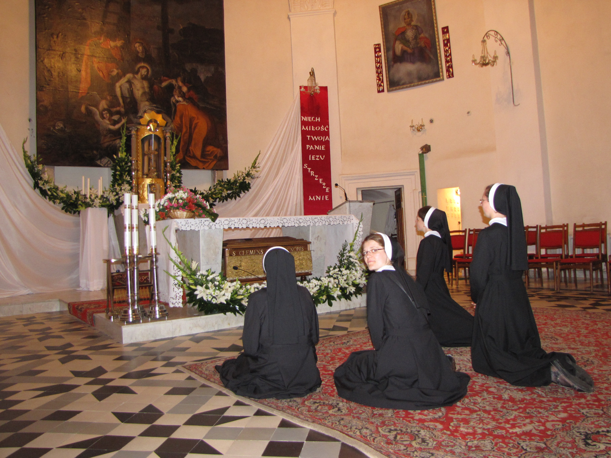 Але потым у манастыры, калі мы бралі сабе імёны падчас распачацця навіцыяту (перыяду паслушніцтва ў манастыры — заўв. рэд.), ужо была сястра Францішка з Беларусі і яшчэ адна з Украіны. Ёсць правіла, што калі імя часта паўтараецца, то табе яго хутчэй за ўсё не дадуць. У дзень, калі ў кожнай сястры павінна з’явіцца новае імя, мы стаім у чарзе да сястры правінцыяльнай, каб паразмаўляць з ёй наконт імя. Я разумела, што імя Францішка мне не дадуць. Варыянтаў у мяне не было. Я ведала, што святы Францішак вельмі любіў святую Кляру, і гэта было ўзаемна. Але на той момант у нас была сястра Кляра ў Гродне, яна была ўжо старэнькая, таму імя гэтае асацыіравалася з маленькай і старэнькай той сястрой Клярай, якая па пэўных прычынах хадзіла ў свецкай вопратцы. У пэўнай ступені гэтае імя мяне не прываблівала, я пра яго і не думала. Таму палова сясцёр сабралася там са мной, пад тымі дзвярыма, дзе я чакала сваёй чаргі. Прыйшлі з календарамі, імя дапамагалі выбіраць. Пыталіся: “Можа гэта? Можа тое?”, а я ў адказ: “Гэтыя не падыходзяць”. І неяк нечакана, у момант, калі я ўваходзіла да сястры правінцыяльнай, я ўсё ж такі вырашыла, што буду Клярай. Нават для мяне самой гэта было нечакана (смяецца — заўв. рэд.).
