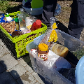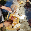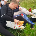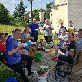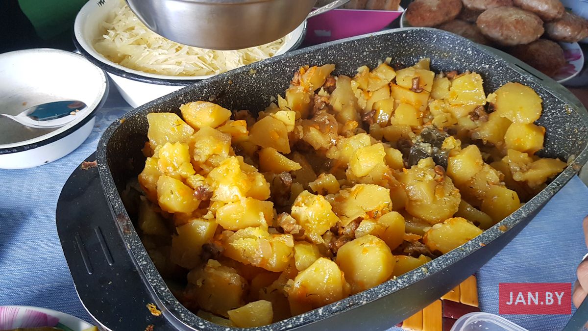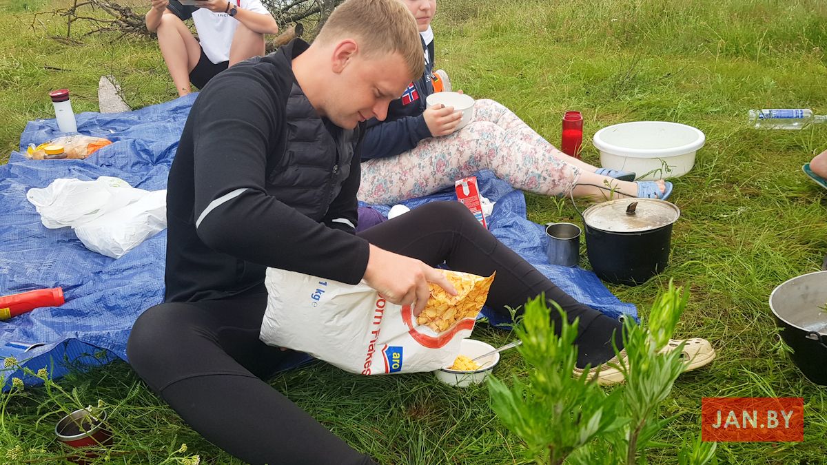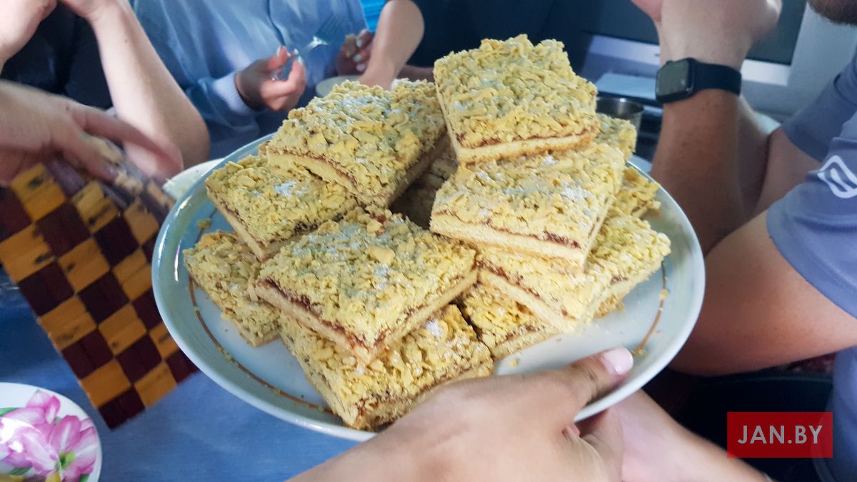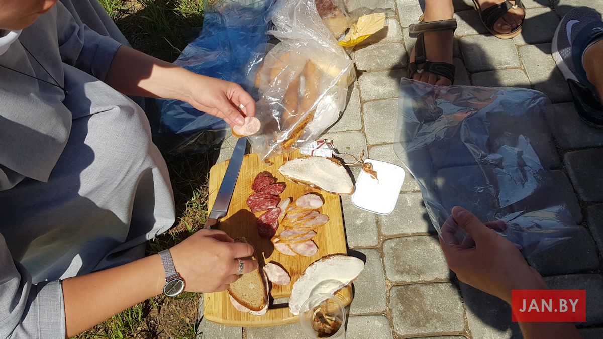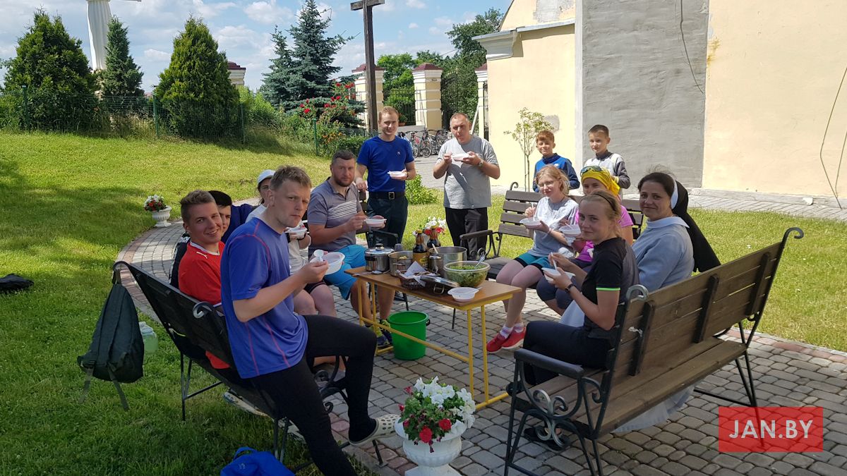 Супольнае прыгатаванне ежы і сумесны пасілак – неад’емная частка самой пілігрымкі і прабывання ў Тракелях. Адабедаўшы, пілігрымам выпала магчымасць прывітаць на тэрыторыі санктуарыя біскупа Аляксандра Кашкевіча і дапаможнага біскупа Юзафа Станеўскага, якія ўдзялілі прысутным Божае благаслаўленне. Падмацаваўшыся духоўна і фізічна, кс. Алег, Вова Лукомскі і Антон Вайткевіч пастанавілі вяртацца на роварах у Мінск, а іншыя ўдзельнікі пілігрымкі працягнулі свой адпачынак на тэрыторыі касцёла, каб потым на роварах даехаць да Гаўі, адкуль вяртацца ў Мінск цягнікамі.