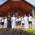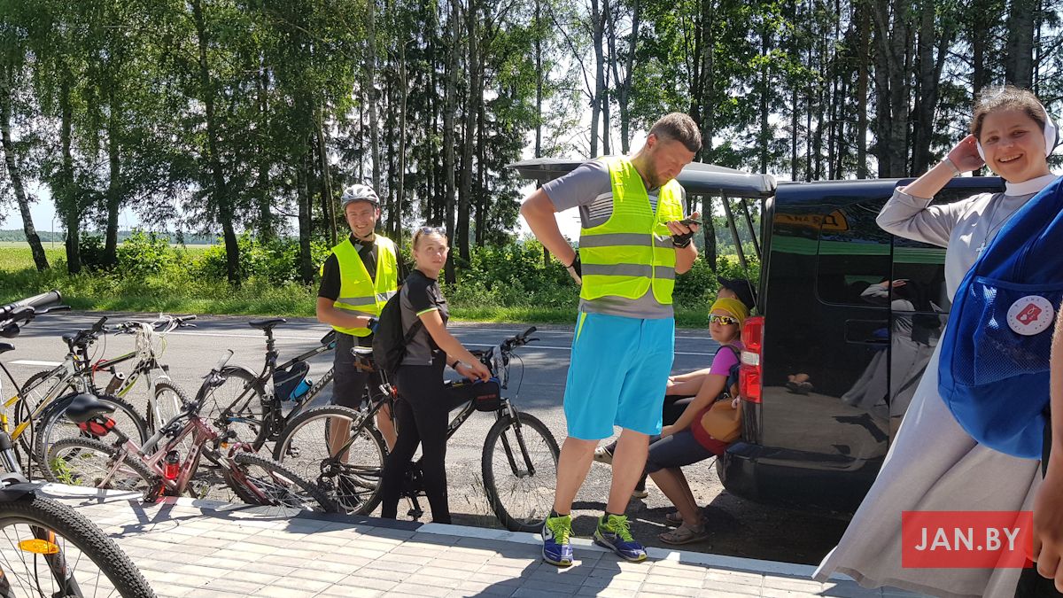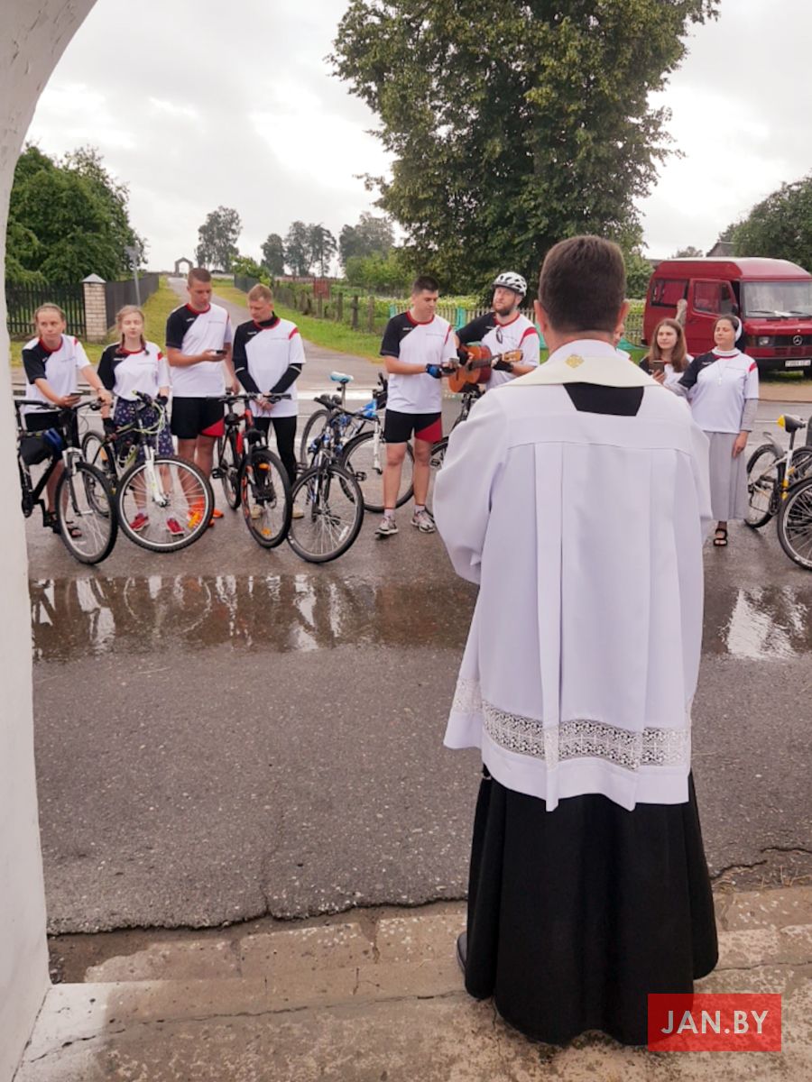 На першае месца пілігрым ставіць асабістую сустрэчу з Езусам і Марыяй, якой вельмі чакае. Гэтай сустрэчы прагнула і моладзь нашай парафіі, якая ў складзе шасці чалавек сабралася разам з ксяндзом пробашчам Алегам Шпецем SChr, ксяндзом Уладзімірам Марушэўскім SChr, клерыкам Аляксандрам Шыманскім і сястрой Агнешкай Рамашкай CSFN, каб на роварах здзейсніць шлях да Маці Божай Каралевы нашых сем’яў у аграгарадок Тракелі, што на Гродзеншчыне.