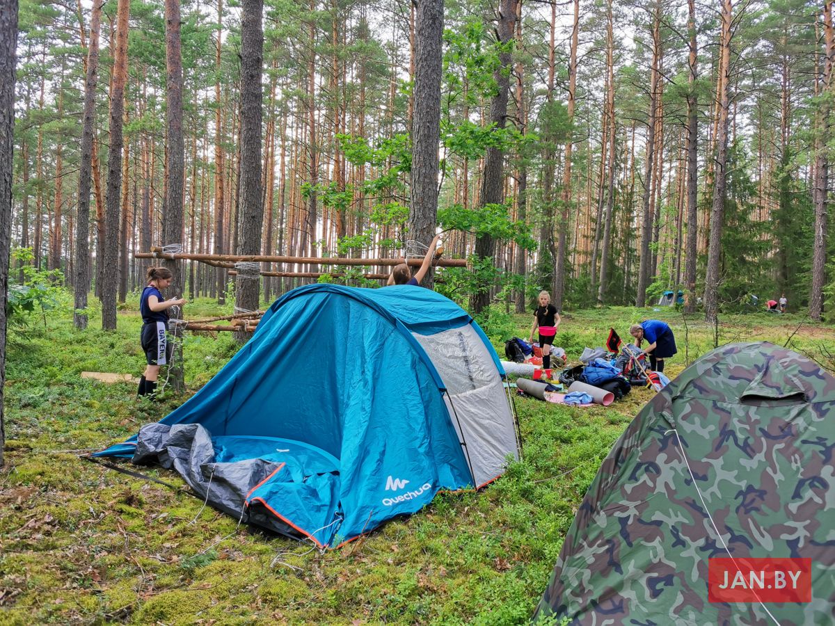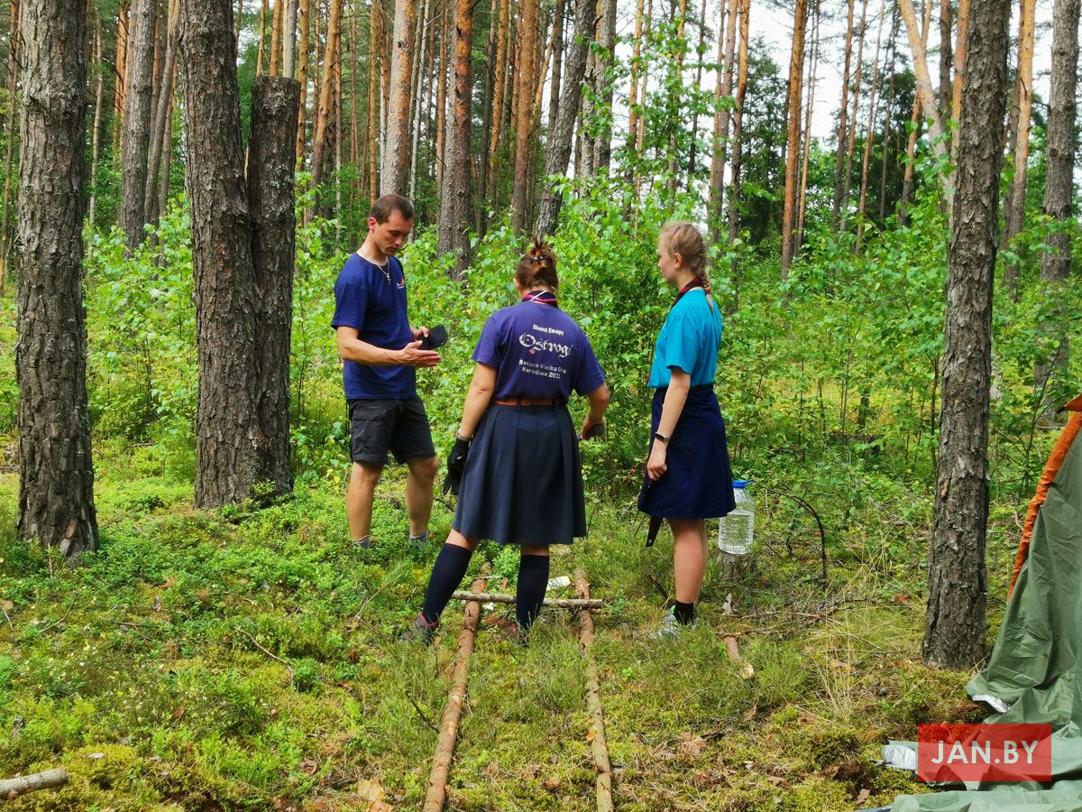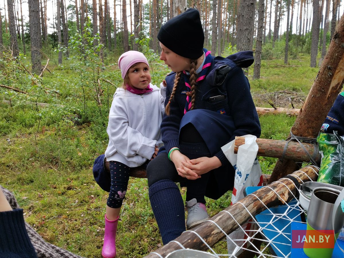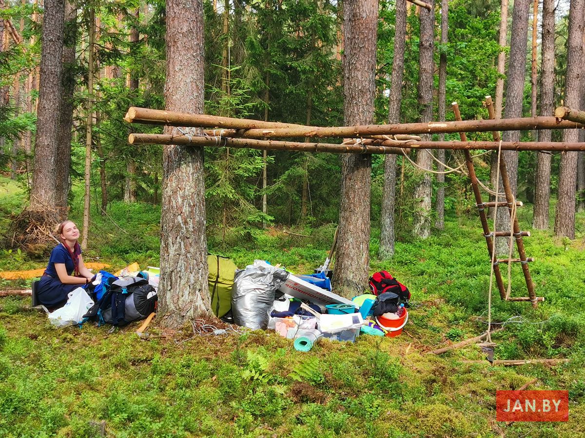 Сапраўдная прыгода распачалася, калі бацькі, якія дапамаглі прывезці сваіх дзяцей і іх рэчы, паехалі дамоў, а скаўткі пачалі, як мурашкі, звыклы для іх рытм летніка. Я не паспявала за імі сачыць, бо ўсіх нас разам было 47 асобаў. Адны ставяць намёт, другія нясуць бэльку для будавання платформы, трэція вяжуць сходы, іншыя рыхтуюць месца для вогнішча.