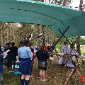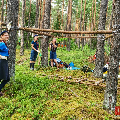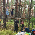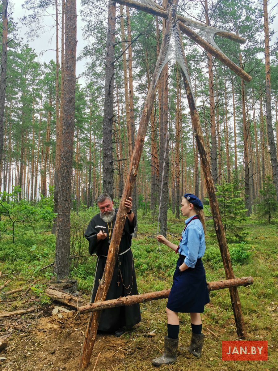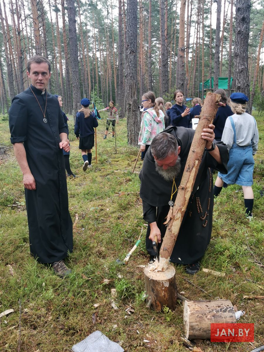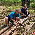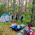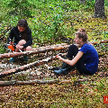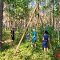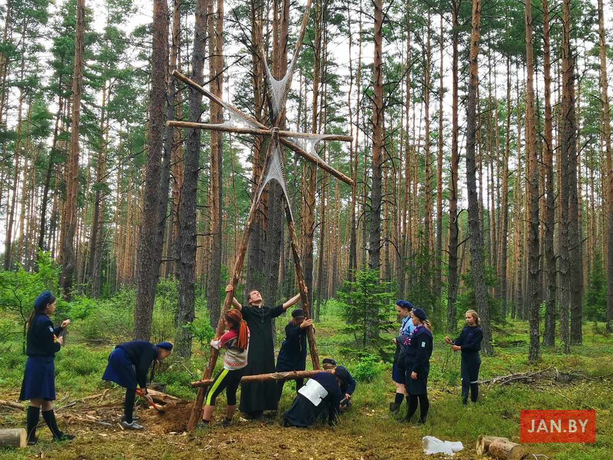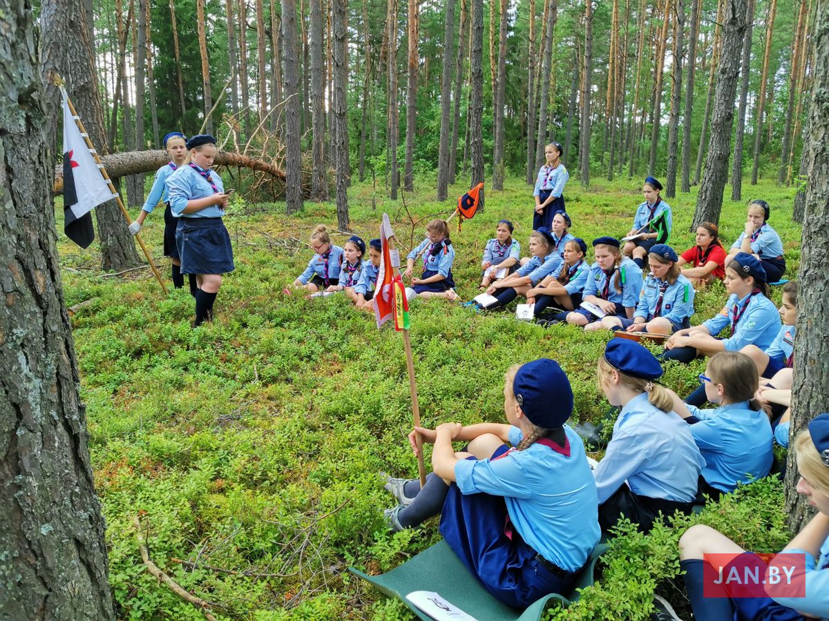 Сапраўдная прыгода распачалася, калі бацькі, якія дапамаглі прывезці сваіх дзяцей і іх рэчы, паехалі дамоў, а скаўткі пачалі, як мурашкі, звыклы для іх рытм летніка. Я не паспявала за імі сачыць, бо ўсіх нас разам было 47 асобаў. Адны ставяць намёт, другія нясуць бэльку для будавання платформы, трэція вяжуць сходы, іншыя рыхтуюць месца для вогнішча.