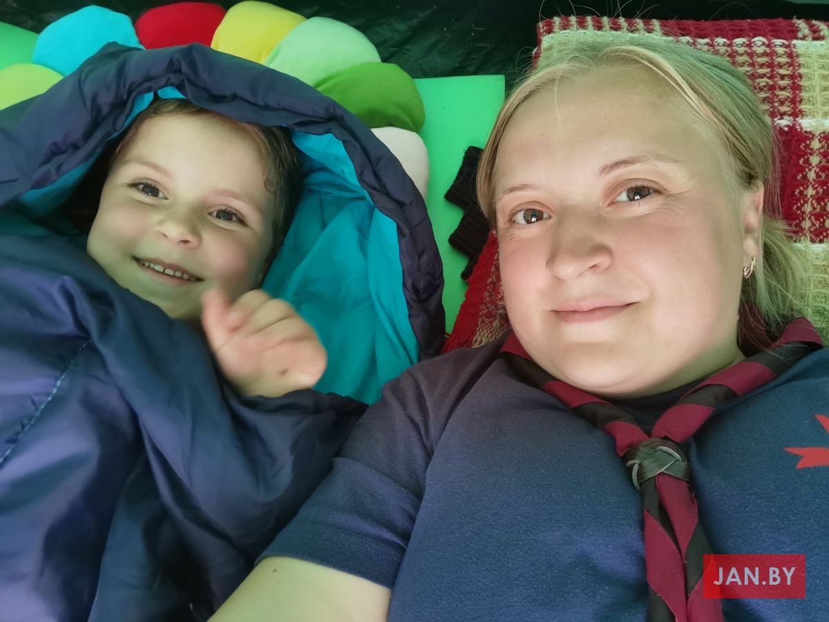 Уначы, бліжэй пад раніцу, пачаўся дождж і грымнула некалькі разоў, але мне гэтага хапіла, каб я схапілася за ружанец і пачала прасіць Бога, каб толькі на гэтым усё скончылася. Перажывала, як там дзеці ў намётах, асабліва малодшыя. Калі на шыхтаванні звязовая пыталася, як прайшла ноч, ці спалохаліся дажджу і навальніцы, амаль усе глядзелі здзіўленымі вачыма і казалі: “Была навальніца? Дождж? Калі?” У той момант я зразумела, што буду маўчаць і не апавядаць пра той страх, які я перажыла…