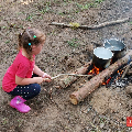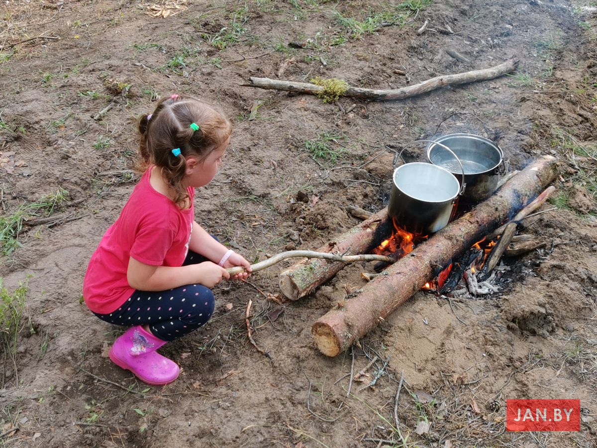 Мне даверылі служэнне кухара: я гатавала пасілкі на вогнішчы для 9 чалавек крааля. Давялося навучыцца хуценька распальваць вогнішча, смажыць ежу на патэльні без ручкі, ставіць кацялок з вадой так, каб не заліць агонь, гатаваць скаўцкую гарбату… Пакуль гатуеш, трэба не забывацца падкідваць дровы ў агонь, а ў гэты момант цябе грызе за нагу вялікая мурашка, якая не разумее, чаго ты тут топчашся па ёй. Калі дзеці выконваюць гэта лёгка і натуральна, то мне прыйшлося пастарацца, каб дайсці да іх узроўню.