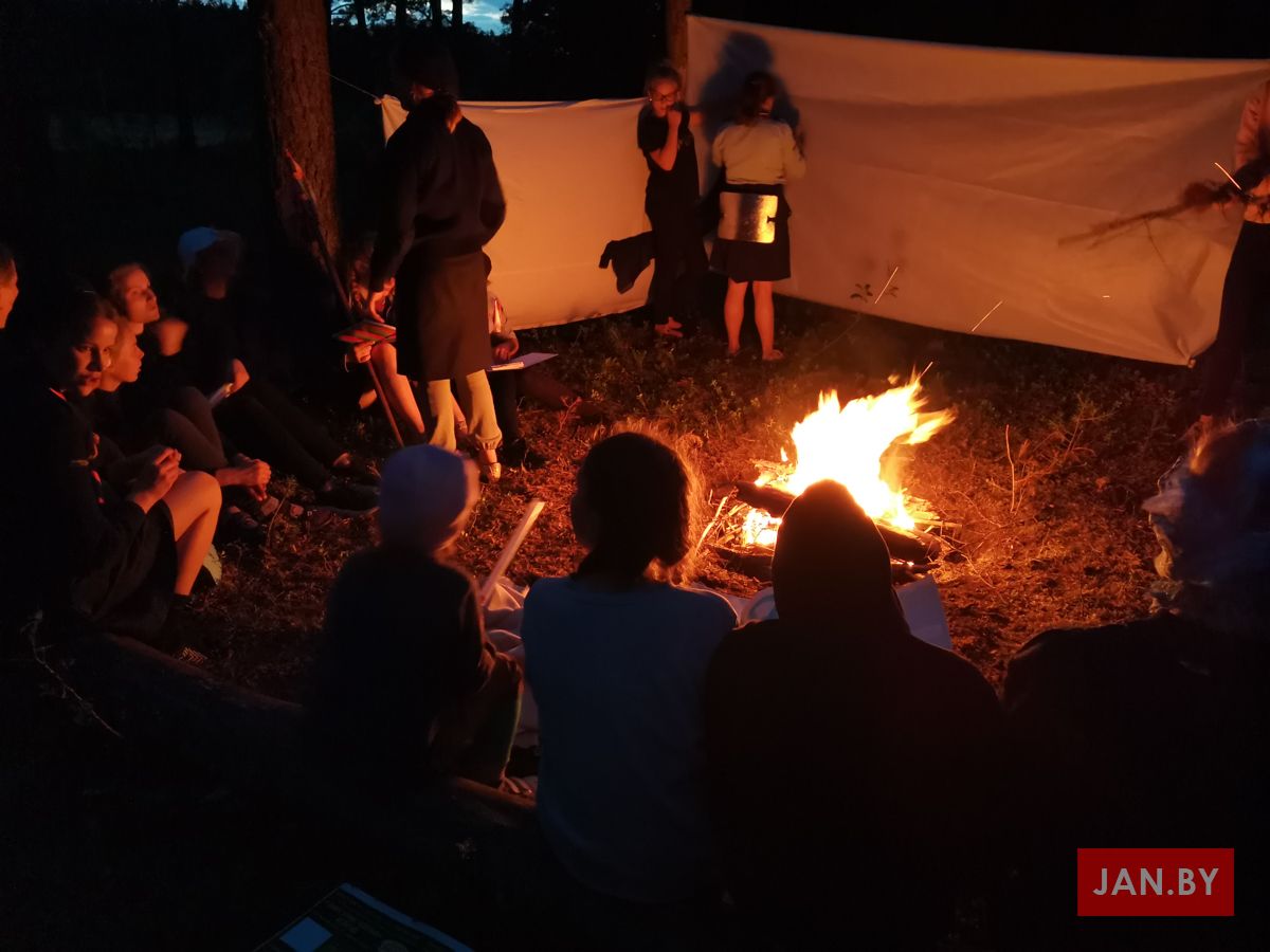 Увечары ўсе разам сабраліся каля вогнішча, каб паглядзець і прыняць удзел у забавах, якія падрыхтавалі самі дзяўчаты. Фабула года ў скаўтак – Аладзін, таму дзяўчаты апраналіся ў прыгожыя усходнія ўбранні, ляталі на дыване-самалёце, спявалі “Арабскую ноч…” і г.д. Я ж вельмі моцна чакала святой цішыні, якая наступае пасля агульнай малітвы і святарскага благаслаўлення, каб хутчэй пайсці спаць, бо мае сілы скончыліся яшчэ перад вогнішчам.