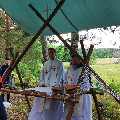 Праз увесь дзень ішло будаванне платформаў, сходаў, кухняў, капліцы, флагштока. Спыняліся толькі для пасілкаў, супольнай малітвы і ўдзелу ў Святой Імшы.