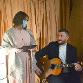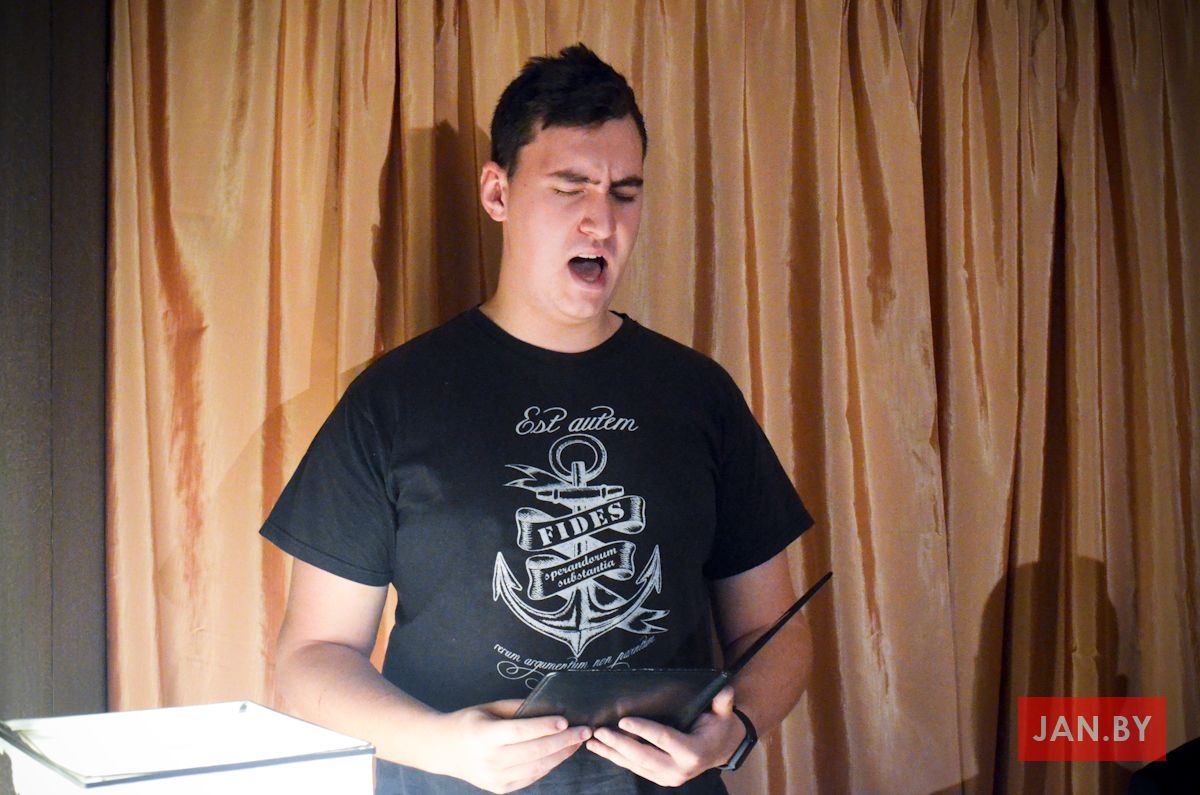 Прыбраная зала, святло ад жывога агню разам з гукамі гітары стваралі вельмі ўтульную атмасферу, а вершы падымалі настрой.