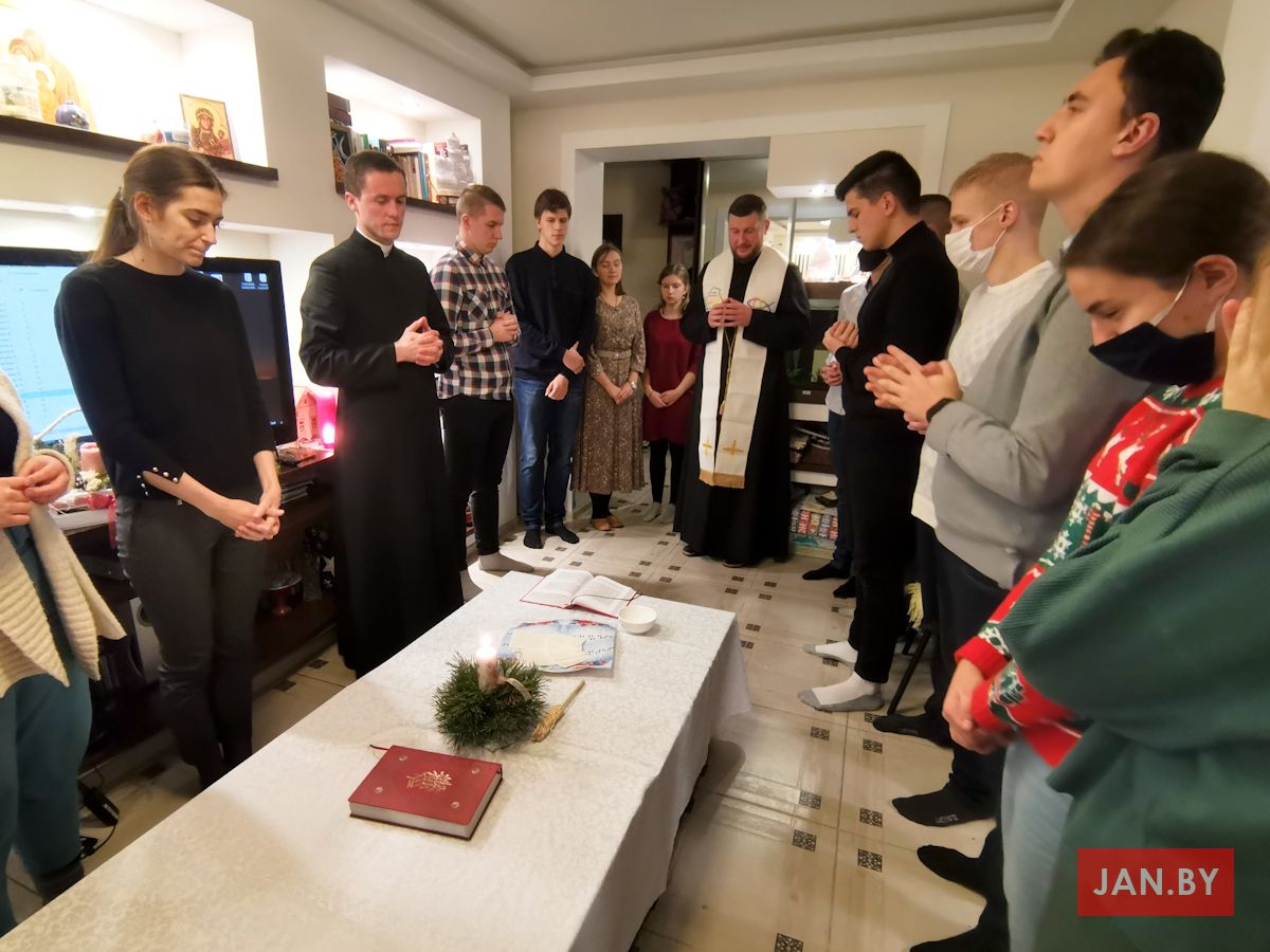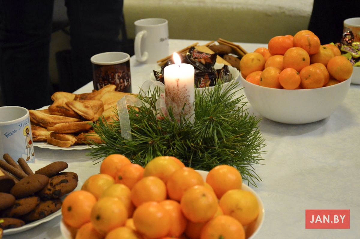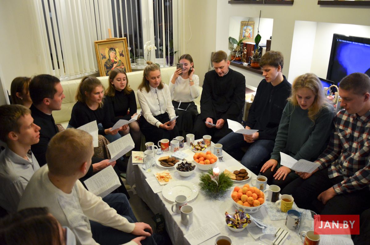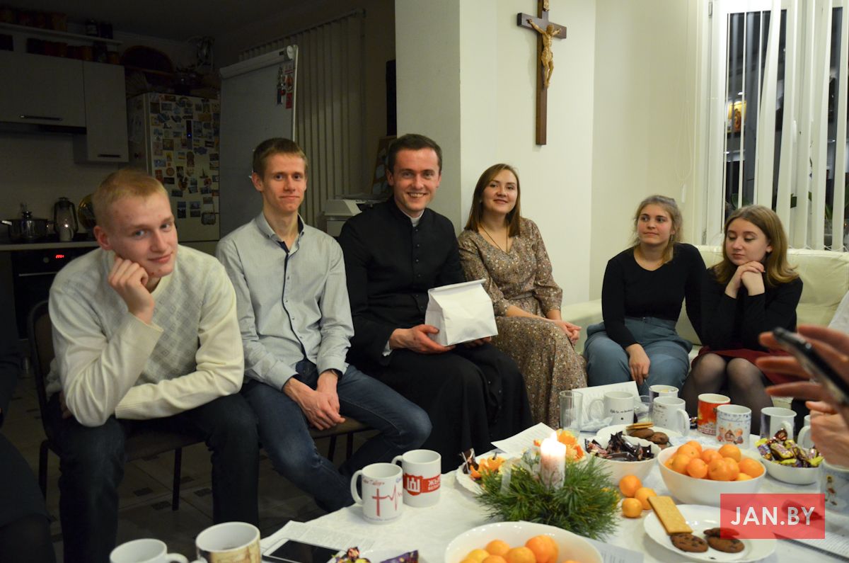 20 снежня сабраліся ўдзельнікі Душпастырства Моладзі Хрыста «Адзіныя сэрцам», каб выказаць адно аднаму словы віншавання з надыходзячымі Калядамі і паламацца аплаткай. Ксёндз Алег напачатку сустрэчы адзначыў, што яго асабліва цешыць сямейны дух, які адчуваецца падчас зборак ДМХ.