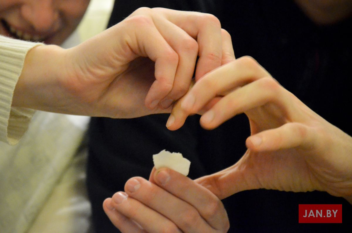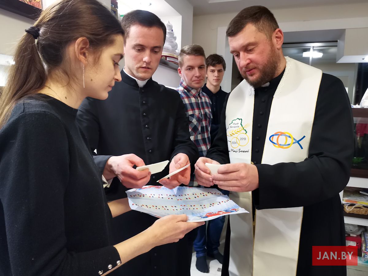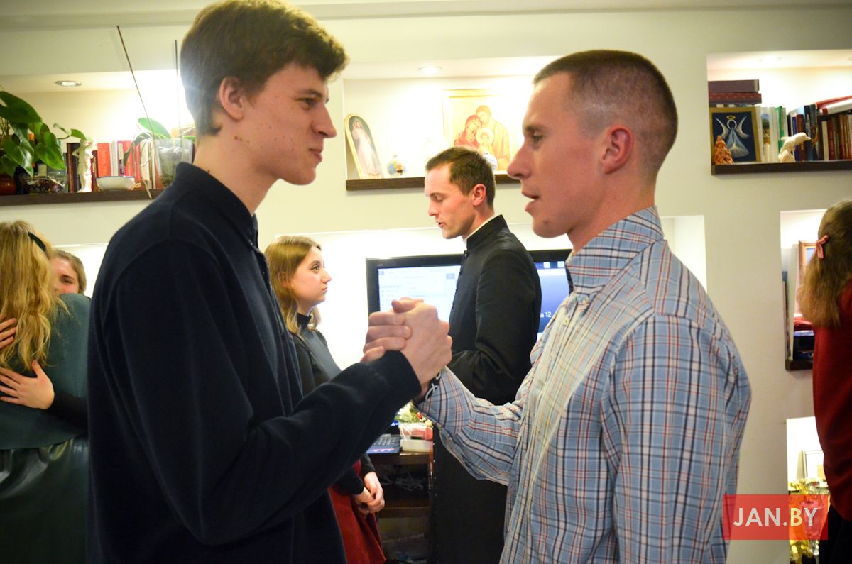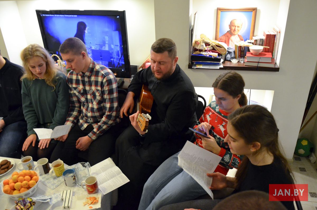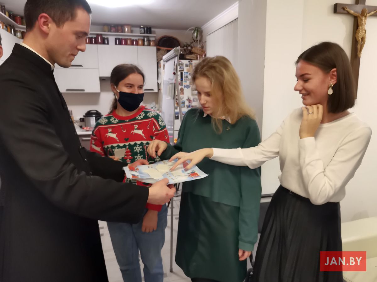 20 снежня сабраліся ўдзельнікі Душпастырства Моладзі Хрыста «Адзіныя сэрцам», каб выказаць адно аднаму словы віншавання з надыходзячымі Калядамі і паламацца аплаткай. Ксёндз Алег напачатку сустрэчы адзначыў, што яго асабліва цешыць сямейны дух, які адчуваецца падчас зборак ДМХ.