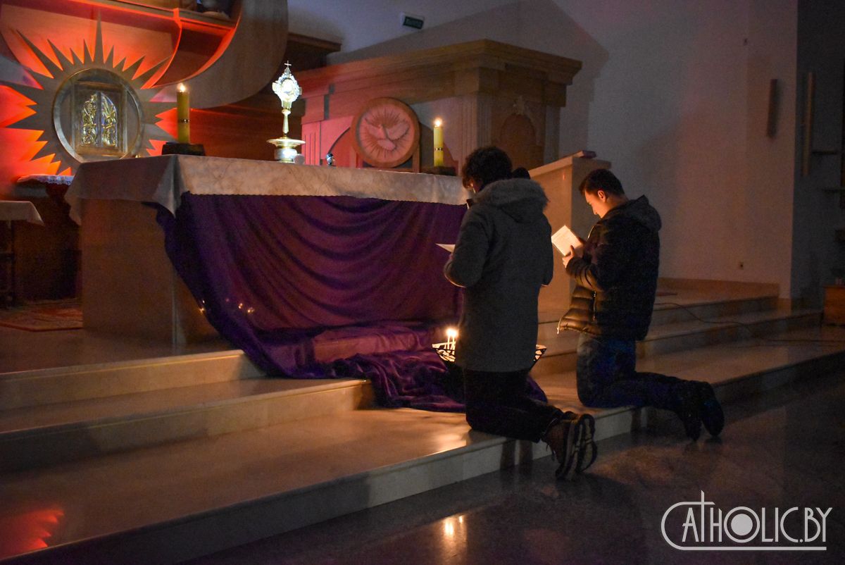 Кожнае стварэнне паклікана да благаслаўлення Бога, бо Ён — Творца ўсяго свету. Усвядоміць гэта моладзі дапамаглі чытанне і малітва словамі Святога Пісання, з Кнігі Даніэля. Кожны ўдзельнік меў магчымасць падысці бліжэй да алтара, запаліць свечку — сімвал святла — і прачытаць гэтую малітву.