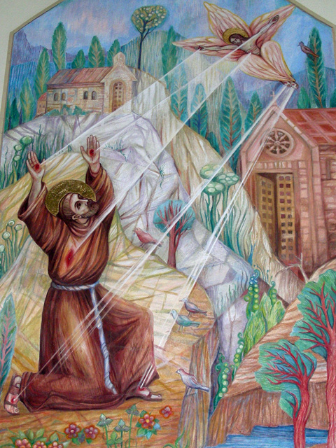 Быў год 1223 падчас малітвы на гары Альвэрна Францішку зьявіўся вобраз укрыжаванага сэрафіма. Калі ён зьнік, на руках, нагах і грудзях Францішка засталіся стыгматы — раны на ўзор ранаў укрыжаванага Хрыста.