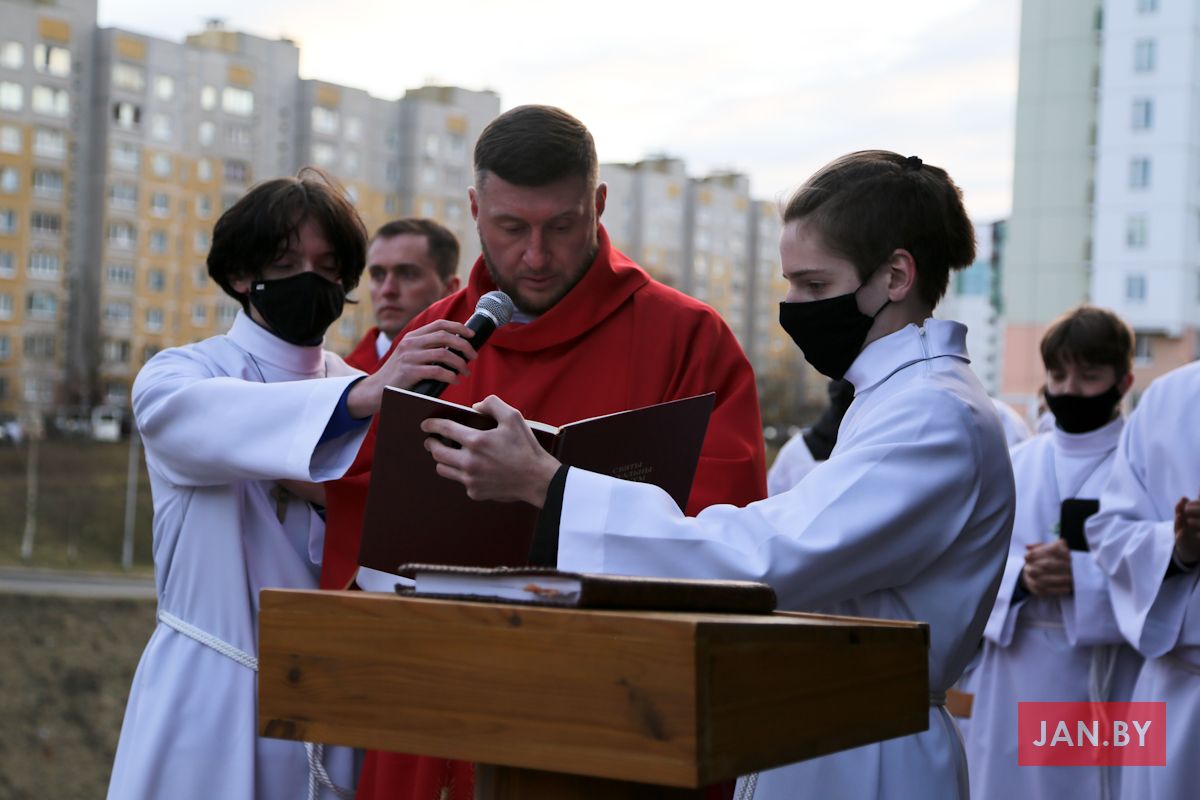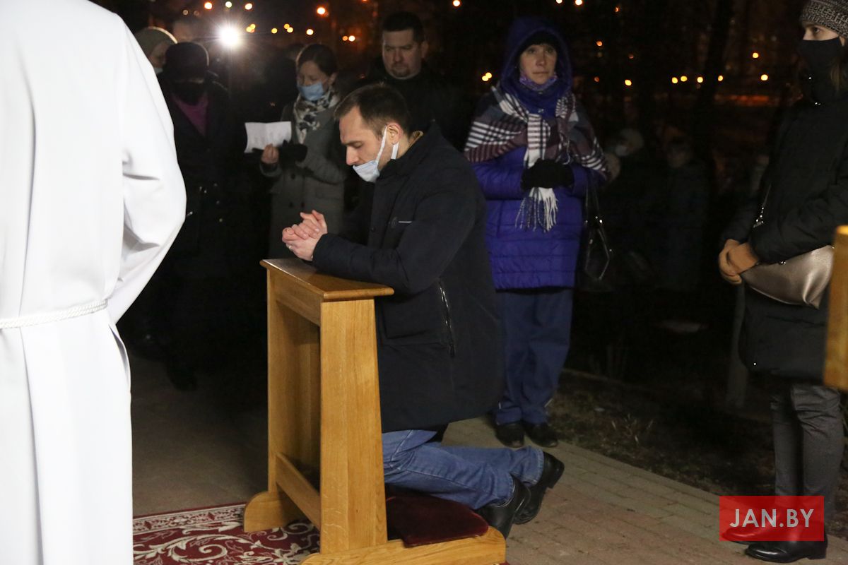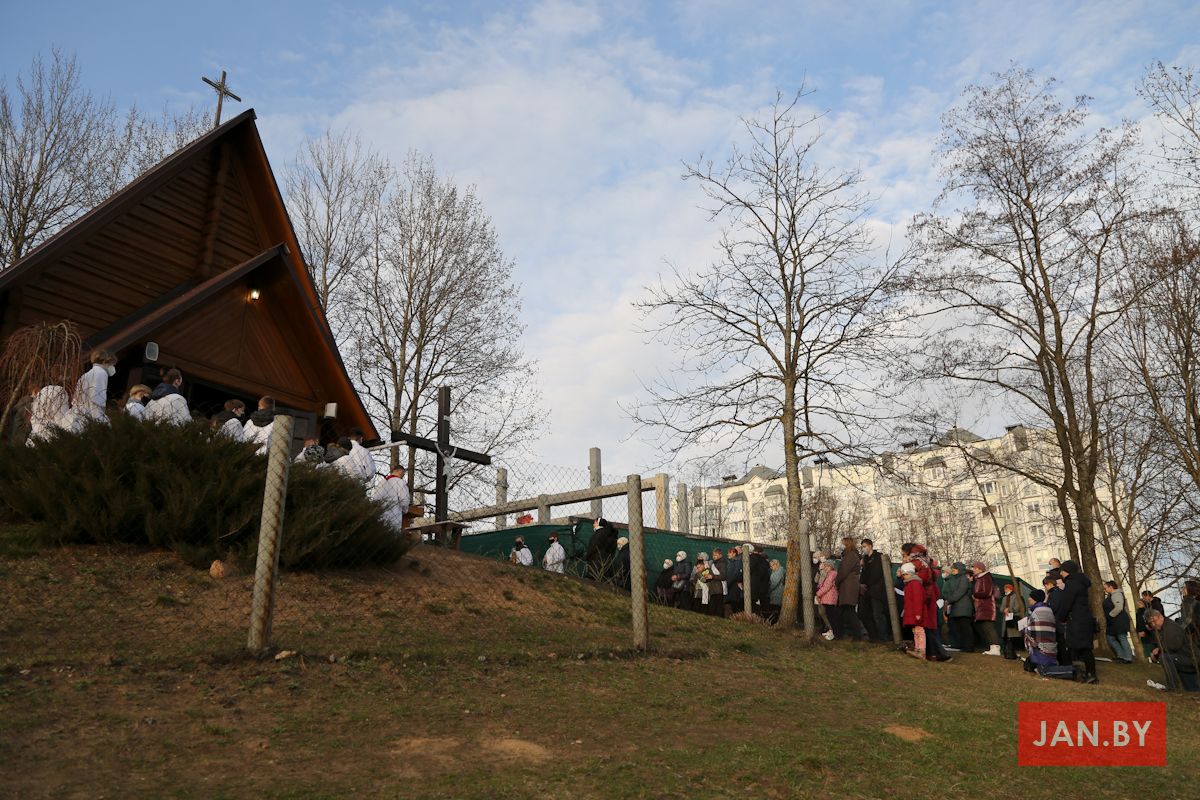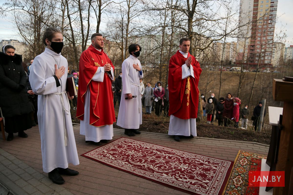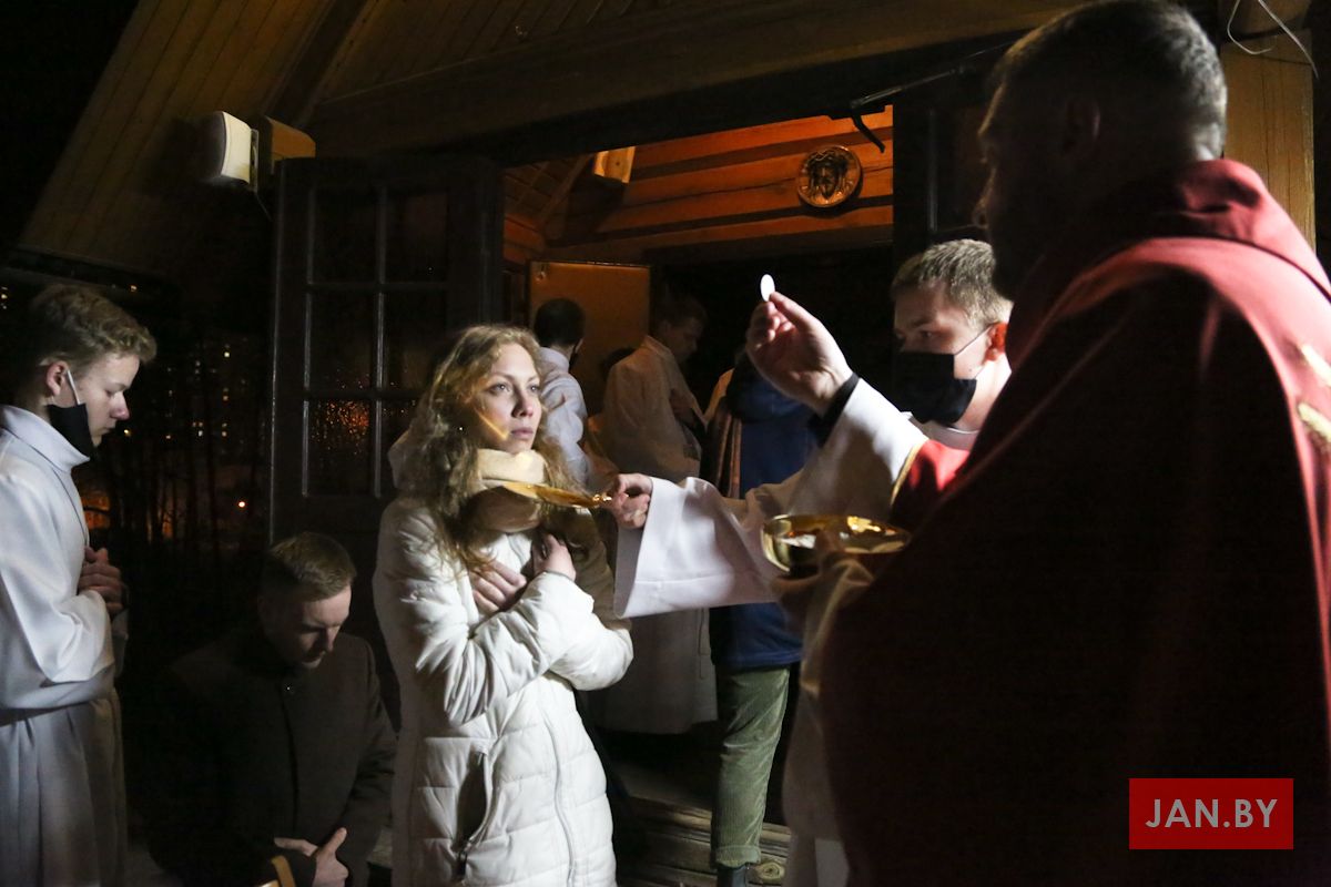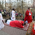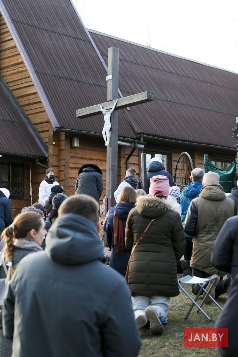 Цэлебрацыю літургіі Мукі Пана ў нашай капліцы ўначаліў пробашч парафіі кс. Алег Шпець SChr. Спачатку святар паклаўся перад алтаром крыжам і пэўны час маліўся ў маўчанні. Затым, падобна як у Пальмовую нядзелю, чыталася па ралях Евангелле з апісаннем Мукі Хрыста.
