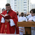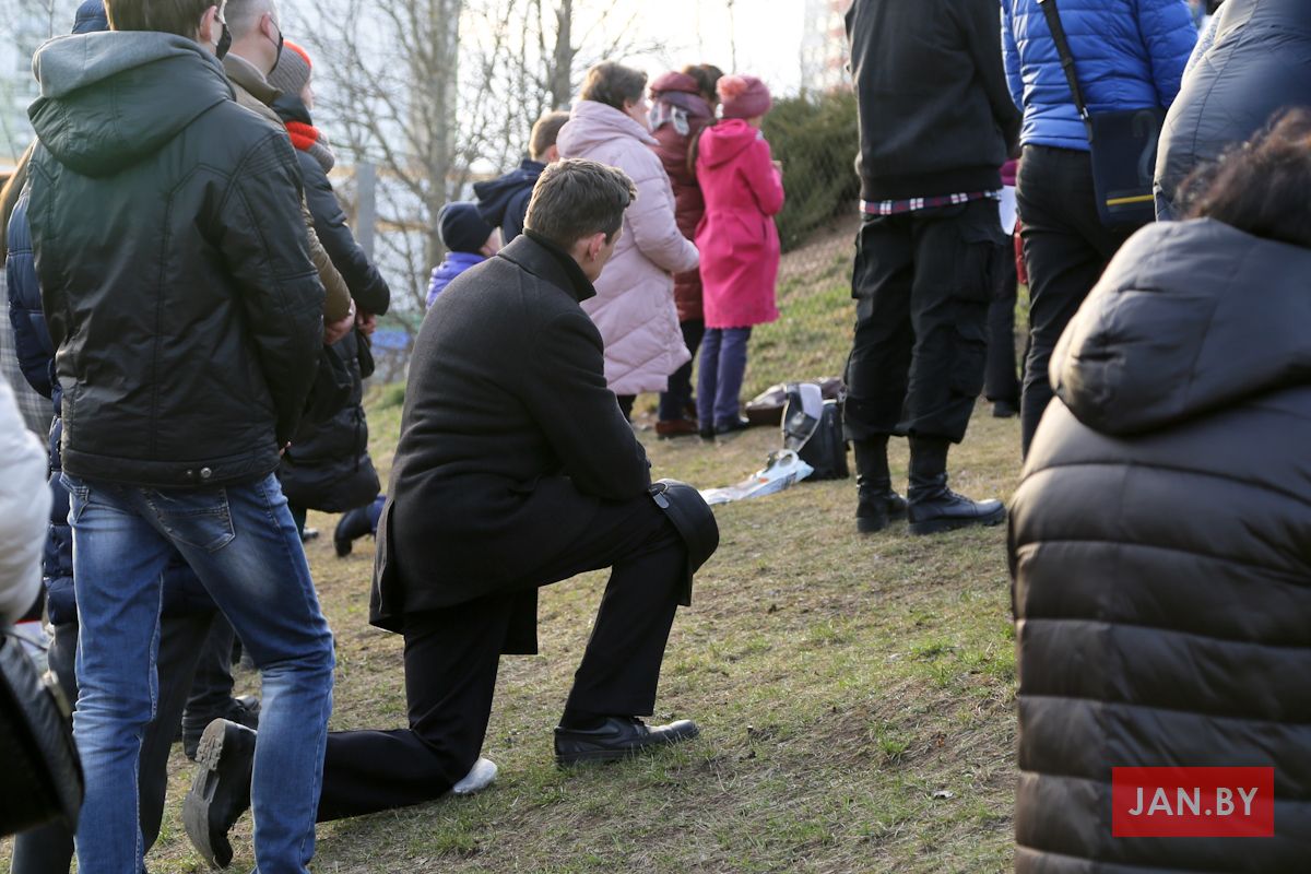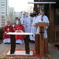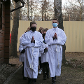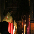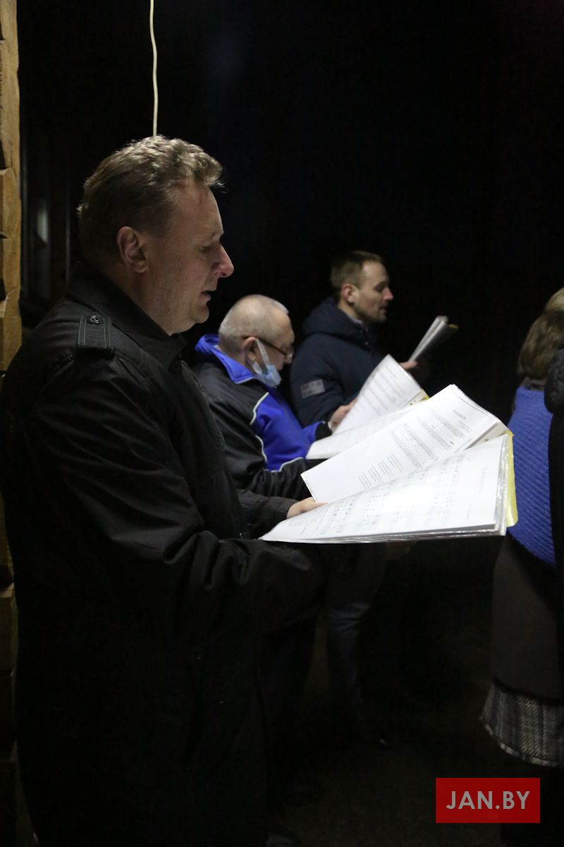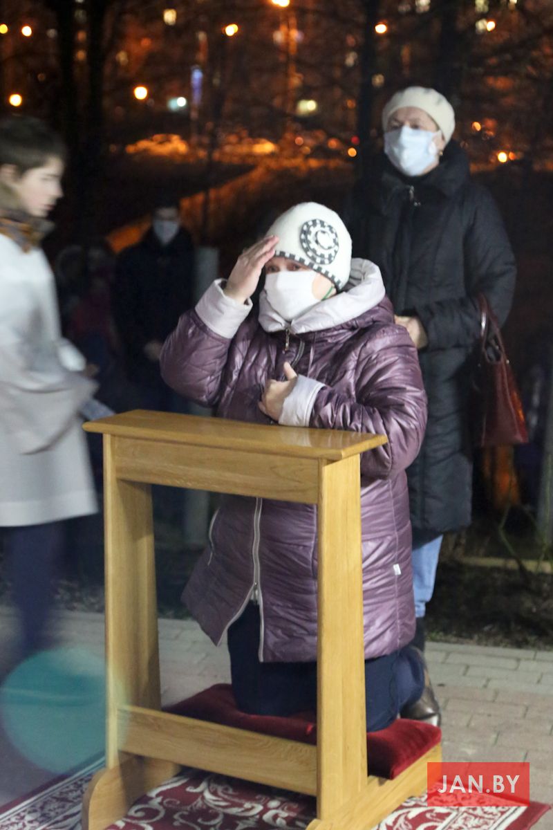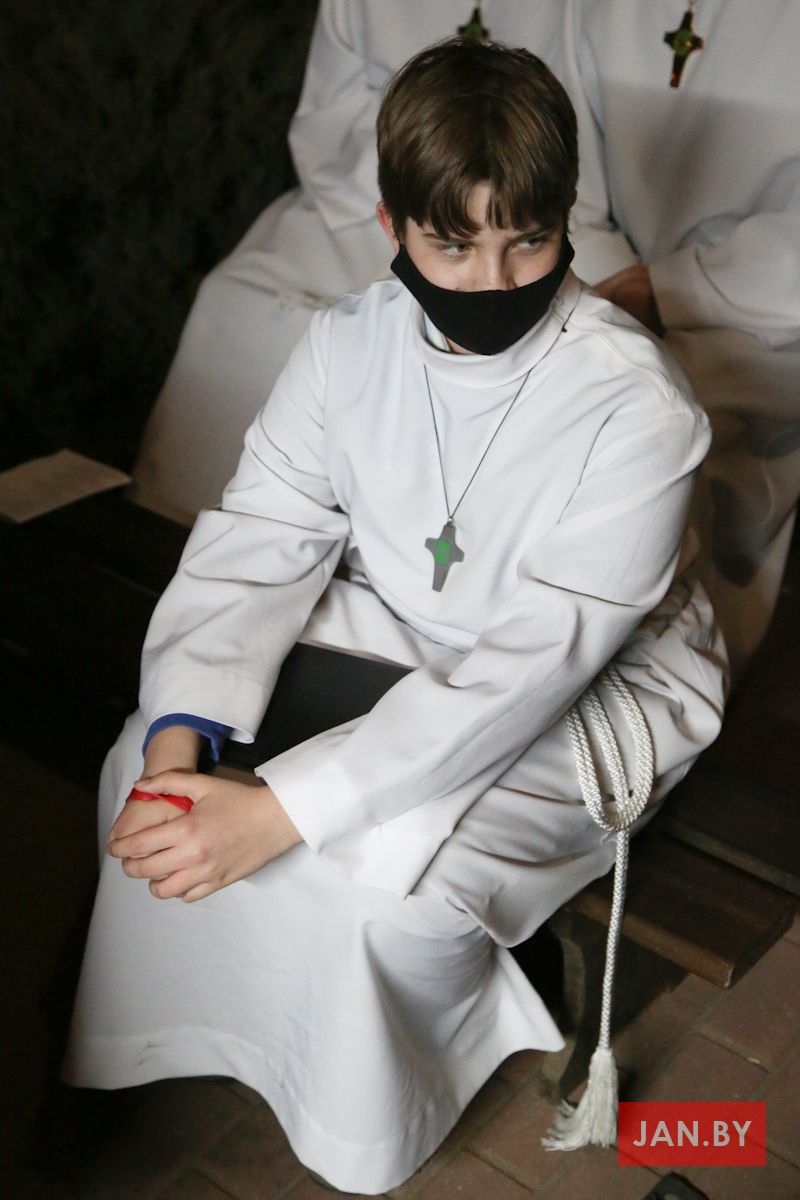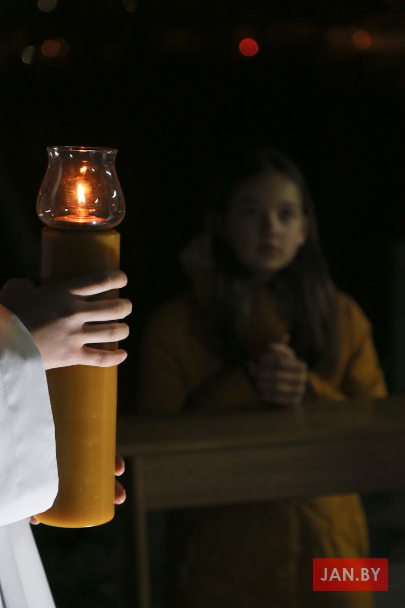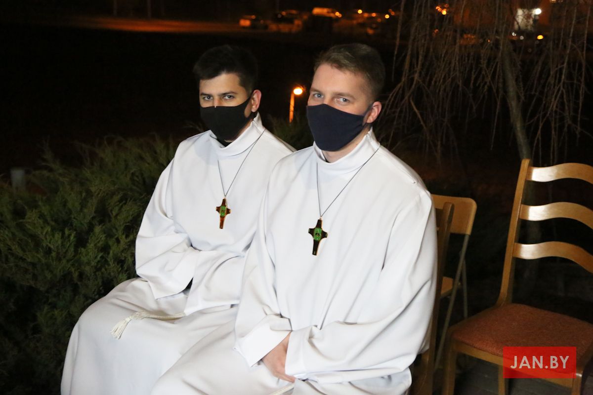 Цэлебрацыю літургіі Мукі Пана ў нашай капліцы ўначаліў пробашч парафіі кс. Алег Шпець SChr. Спачатку святар паклаўся перад алтаром крыжам і пэўны час маліўся ў маўчанні. Затым, падобна як у Пальмовую нядзелю, чыталася па ралях Евангелле з апісаннем Мукі Хрыста.