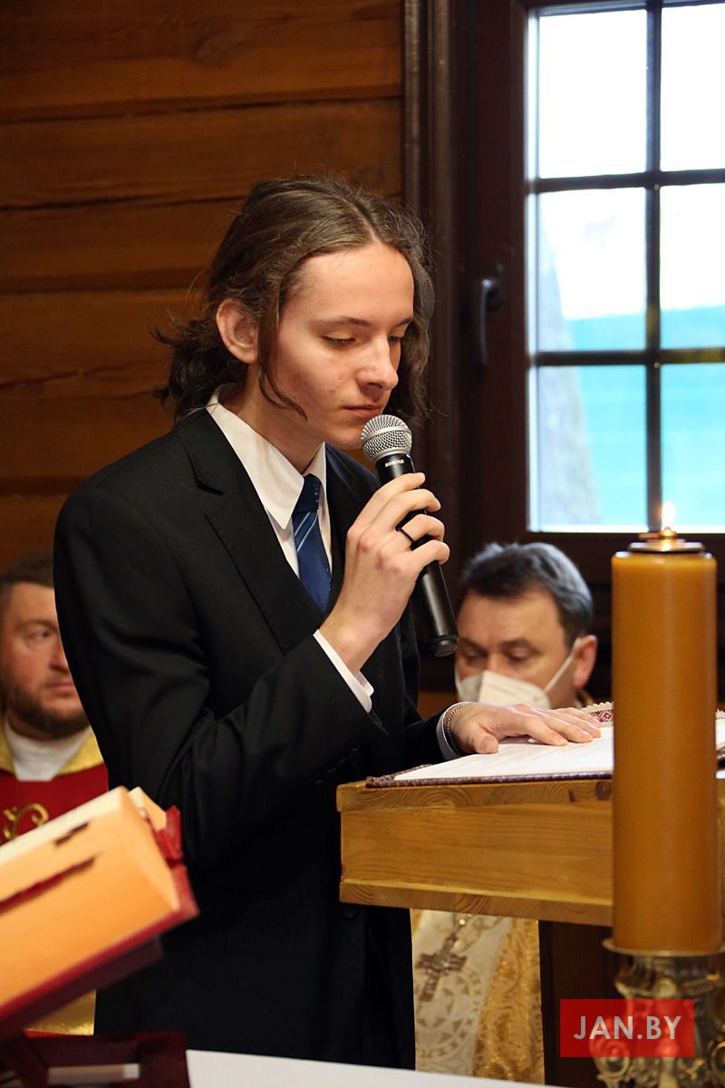 Ксёндз пробашч Алег Шпець звярнуўся да іерарха словамі Святога Пісання: «Ты добра зрабіў, што прыйшоў. Цяпер мы ўсе стаім перад Богам, каб пачуць усё, што загадаў табе Пан» (Дз 10, 33).
