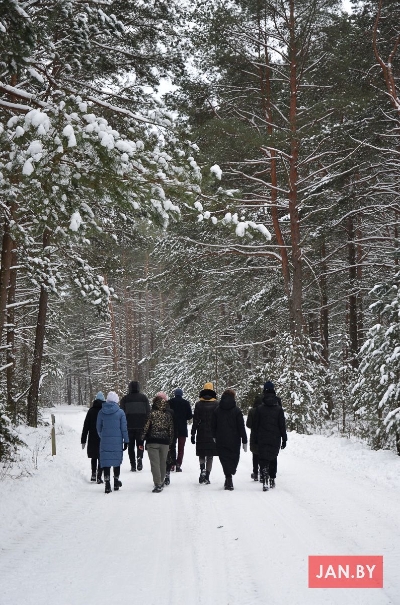 Добра насыціўшыся духоўнай ежай, удзельнікі накіраваліся ў мядзельскі лес на шпацыр. Сузіраючы хараство, створанае Богам, маліліся на ружанцы і мелі час на цішыню. Падчас шпацыра знайшоўся час і на розныя забавы са снегам і фатаздымкі.