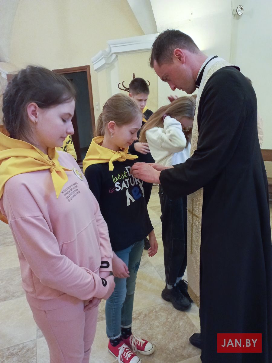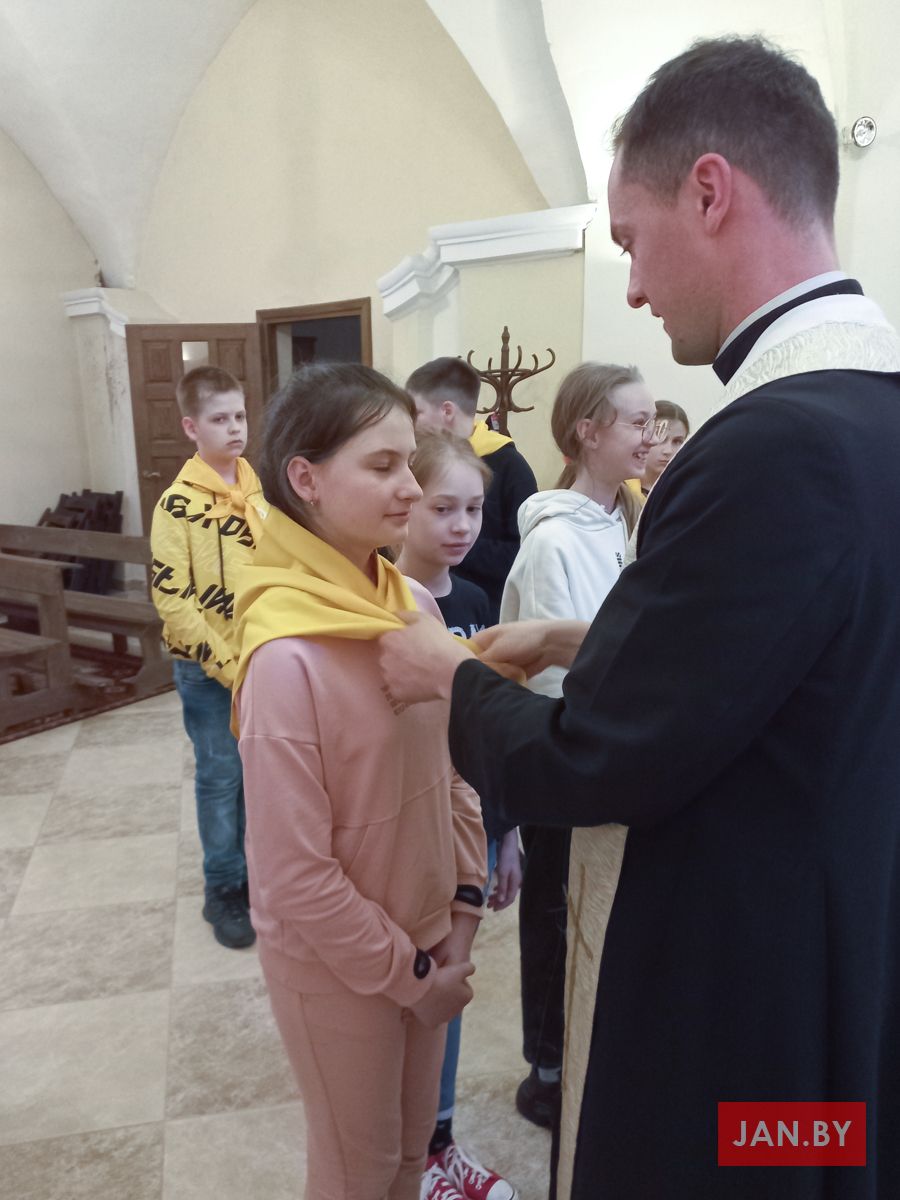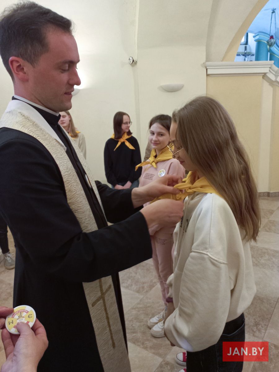 Пасля спеваў, разважанняў і хвілін асабістага прабывання і размовы з Хрыстом адбыўся яшчэ адзін важны момант для супольнасці ЭРМ: да руху былі далучаны тры новыя асобы. Ксенія Кановіч, Яна Мяшуткіна і Ева Паўлавец прачыталі тую формулу прыняцця, якую не так даўно прамаўлялі іншыя ўдзельнікі. Дзяўчынкам таксама ўрачыста былі павязаны гальштукі і прычэплены значкі ўдзельнікаў ЭРМ. Напэўна, кожны адчуваў у той момант радасць у сэрцы ад таго, што яшчэ некалькі дзяцей захацелі развіваць свае адносіны з Езусам Эўхарыстычным, а супольнасць заўсёды на гэта адкрыта.