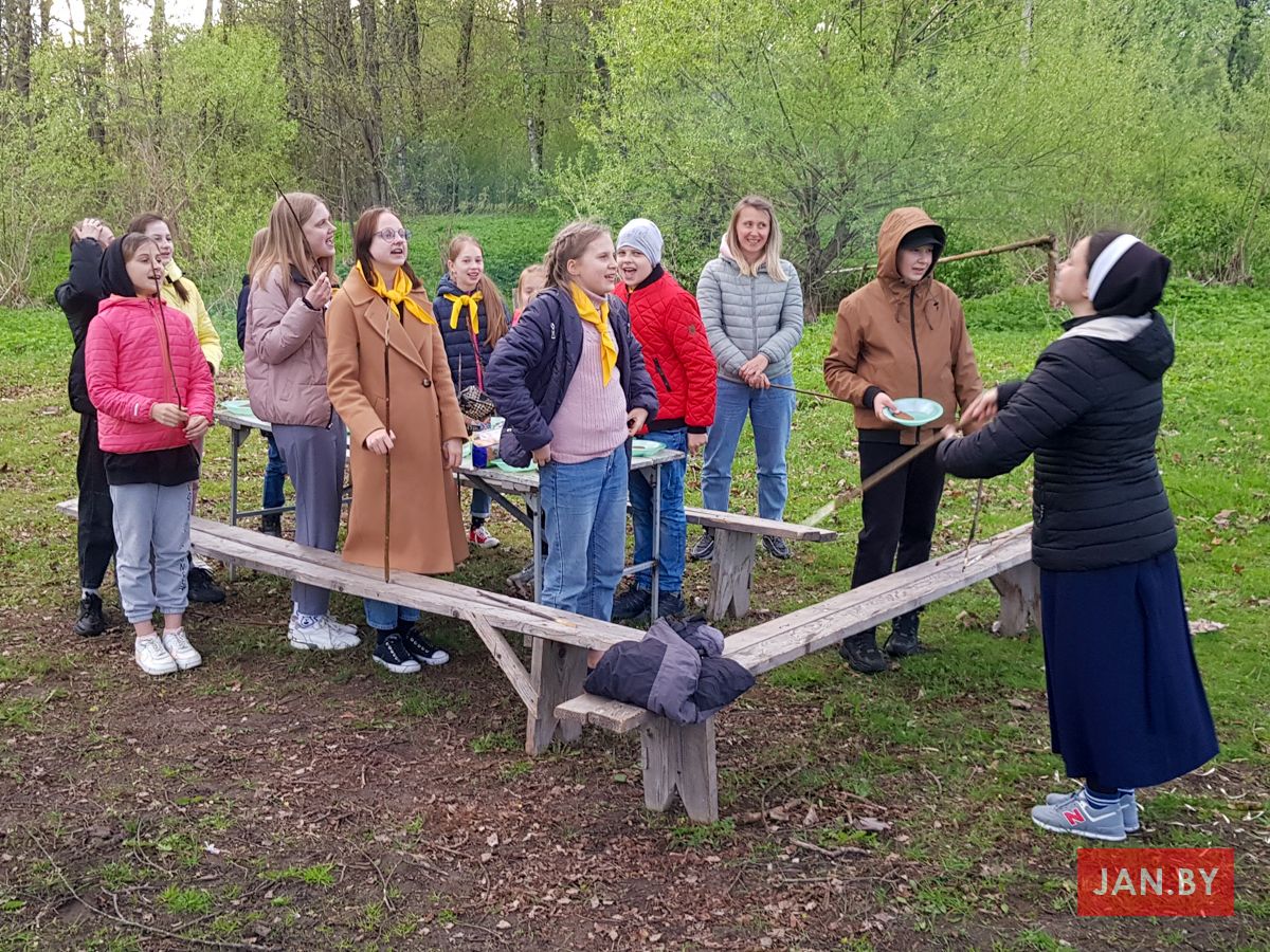 Насычаны дзень завяршыўся вячэрай каля вогнішча і цікавымі гульнямі. Перад сном усе супольна памаліліся літаніяй да Найсвяцейшай Панны Марыі і, перадаючы адзін аднаму святло Хрыста, дзякавалі за пражыты дзень, за бацькоў, сяброў, святароў і сёстраў, за супольнасць і ўсё тое, чым адорвае нас наш Збаўца.