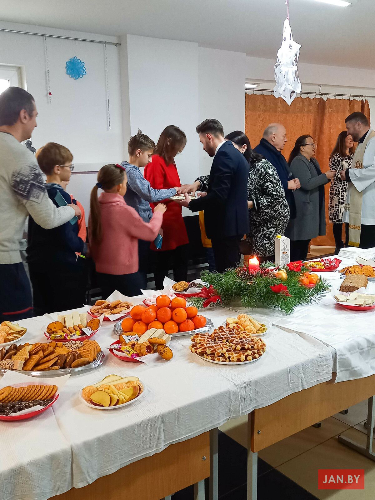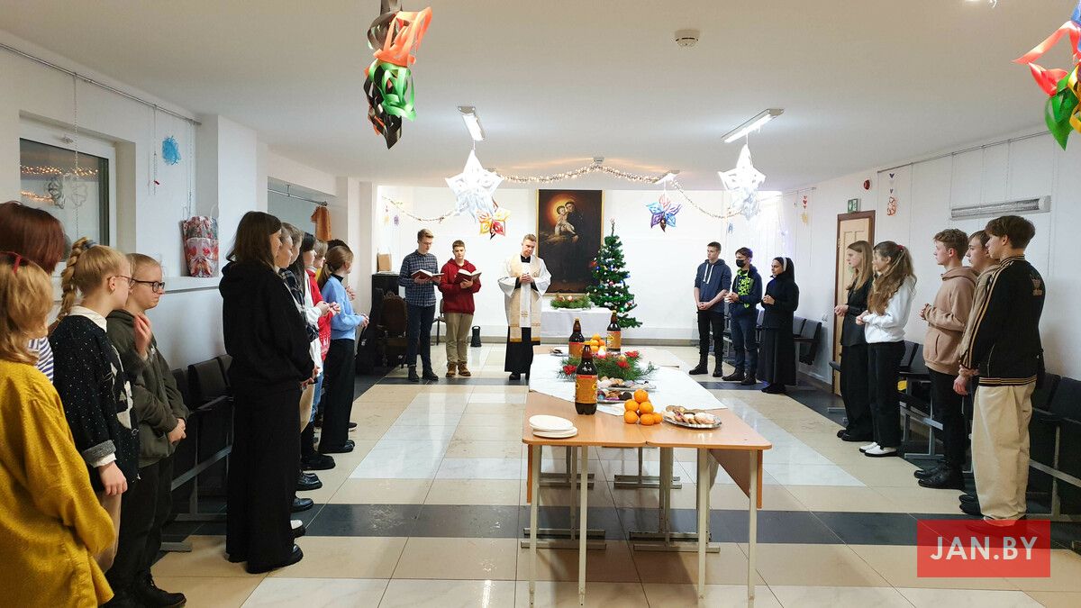 Сёння ўвечары мы будзем сядаць за вігілійны стол са сваімі роднымі. А ў нашай парафіі мы ўжо распачалі святкаванне Божага Нараджэння: напярэдадні адбылося ламанне аплаткай у парафіяльных супольнасцях.