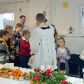 — Духоўны сэнс дзецям трэба тлумачыць: белы хлеб — гэта сімвал Езуса; тое, што мы яго ламаем, — знак таго, як мы дзелімся Езусам з бліжнімі, вучымся прасіць прабачэння і прабачаць людзей, — працягвае свае думкі сястра Назарыя. — Але гэта была б толькі тэорыя, калі б дзеці толькі слухалі пра гэта. Таму класна, што ў нашай парафіі ёсць магчымасць збірацца разам і фізічна ламацца той самай аплаткай. Гэта свята вельмі масштабнае: гэта бачна не толькі па колькасці ўдзельнікаў, але і па тым, што прыходзяць цэлыя сем’і. У цэнтры спаткання свечка, бо святло — сімвал Езуса, як напісана ў Евангеллі (пар. Ян 8:12).