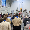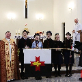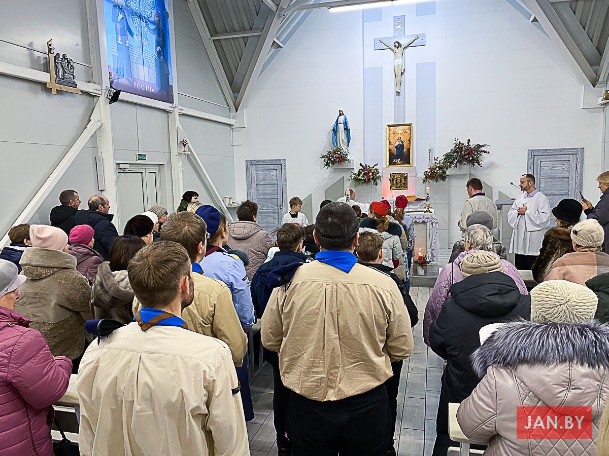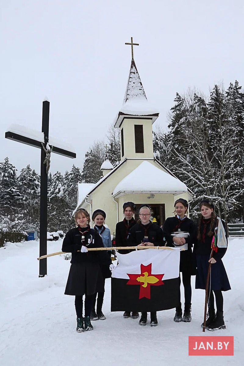 Таксама наша зграя разам з Божымі кароўкамі ўжо некалькі гадоў заносіць агонь у парафіі на Сухарава і Кальварыі. Ну і, канешне, мае гонар заносіць агонь урачыстай працэсіяй да нас, у родную каплічку.