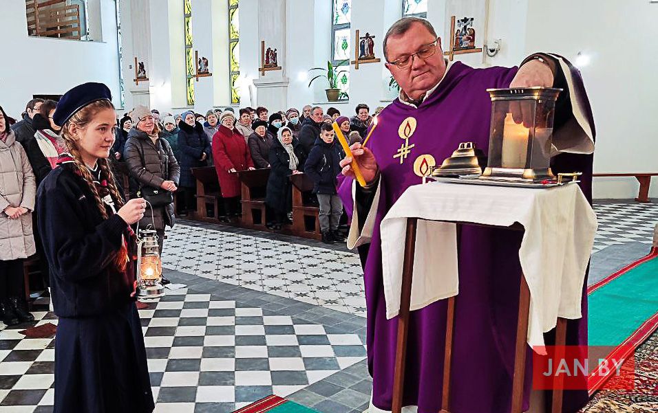Дарэчы, у гэтым годзе, як і ў мінулым, агонь у Мінскай катэдры сустракаў арцыбіскуп мітрапаліт Юзаф Станеўскі.