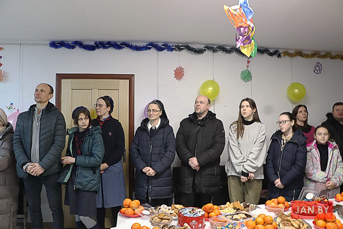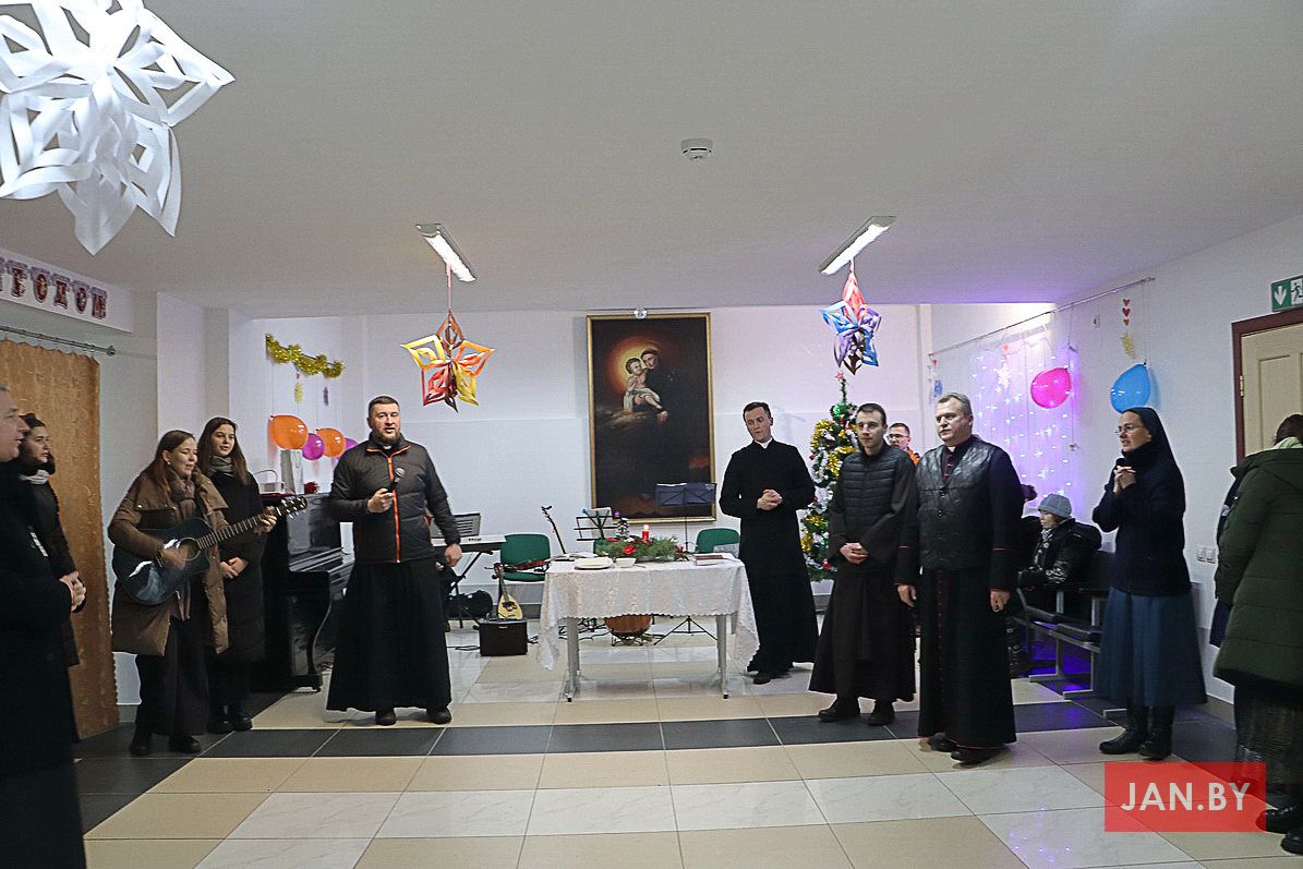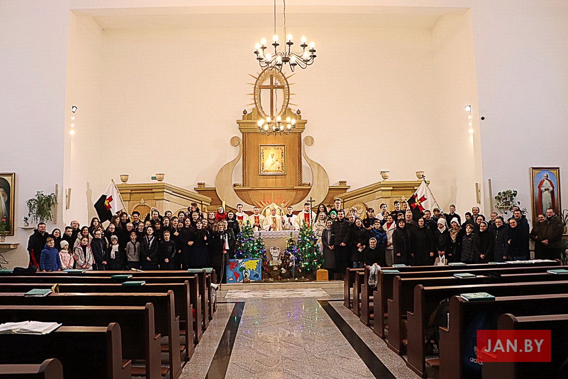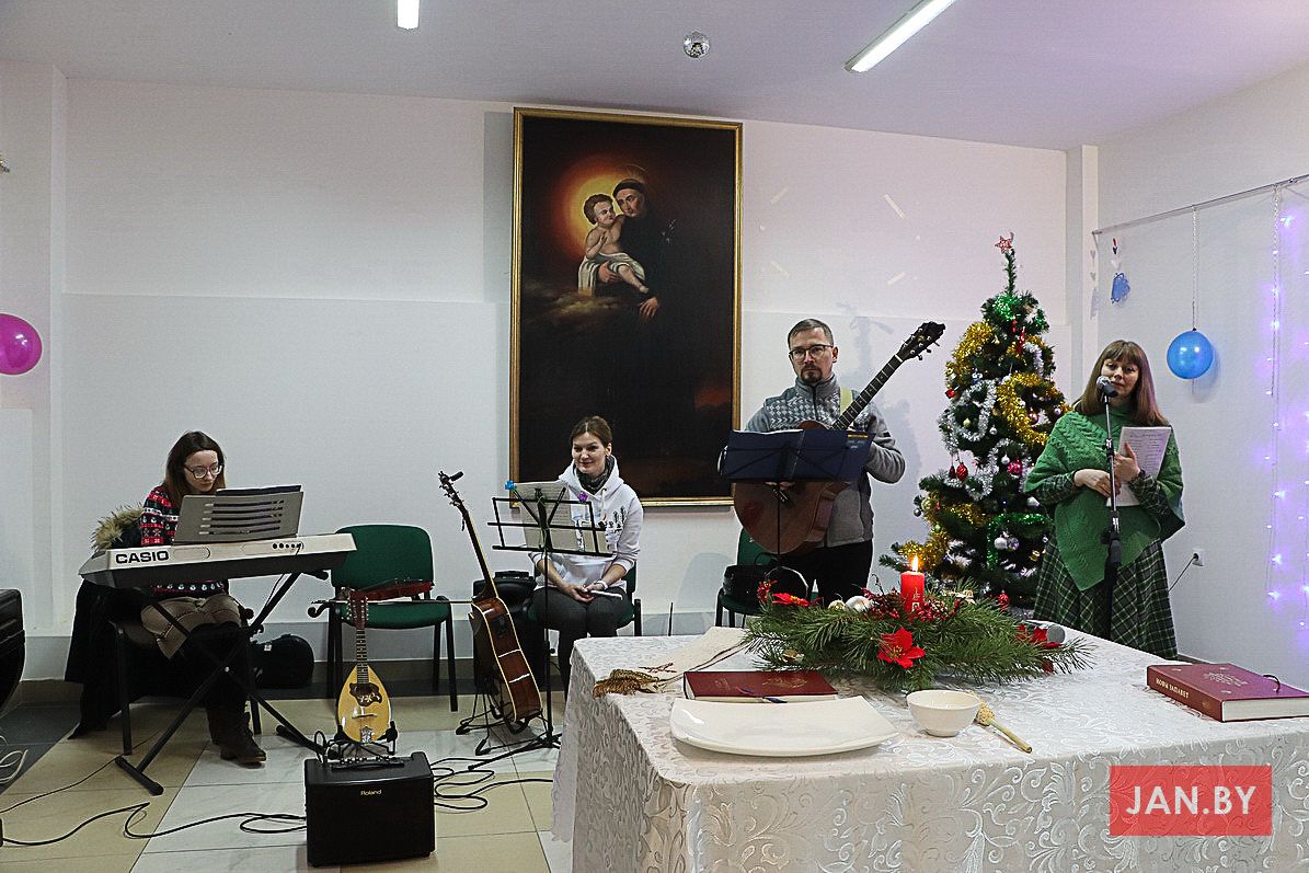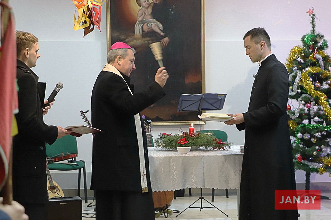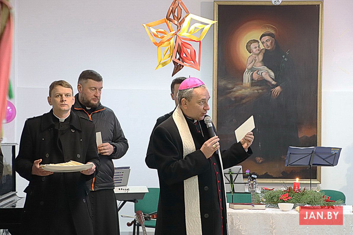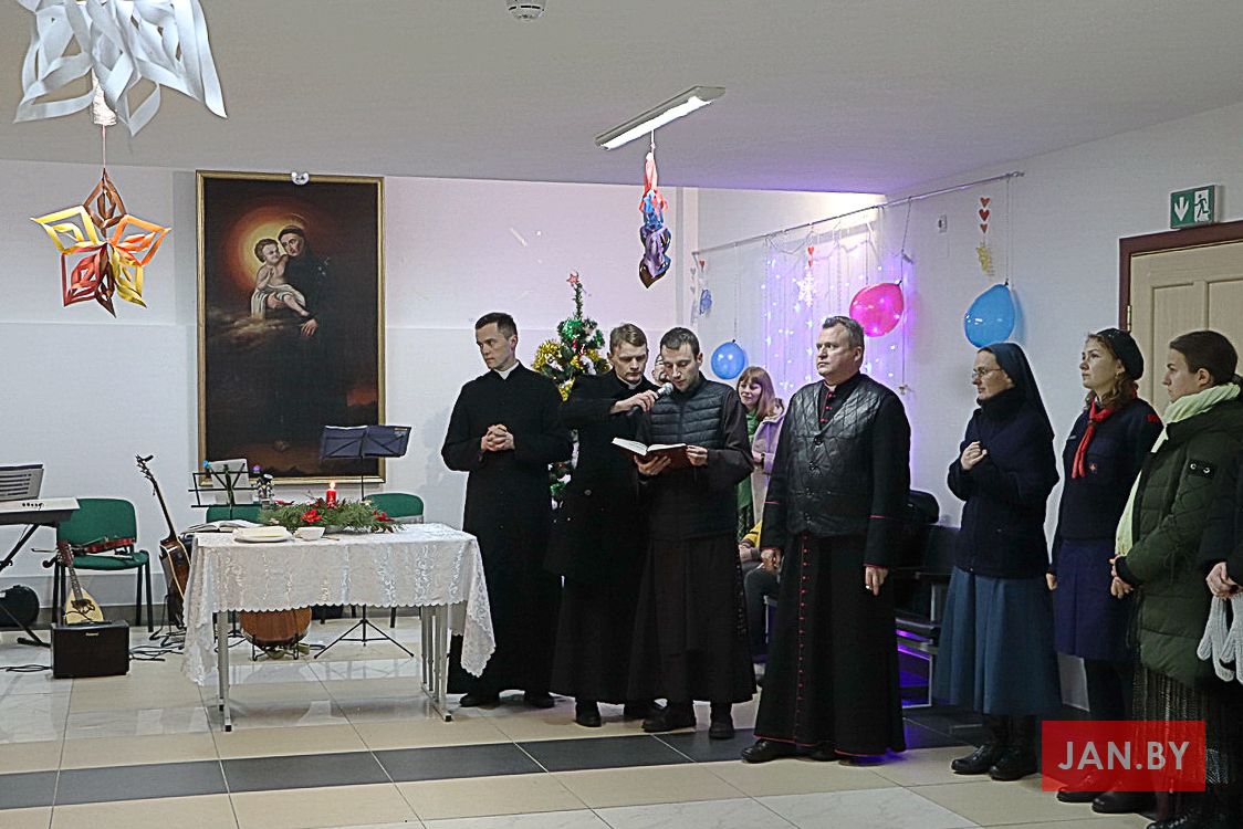 Другая частка святкавання адбывалася ў дольным касцёле. Біскуп Юрый благаславіў аплаткі, пасля чаго пілігрымы віншавалі адзін аднаго са святамі. Гурт Jolly Green ствараў святочную атмасферу, спяваючы калядкі розных краін свету. Затым быў паказаны фільм, у якім сабраныя ўспаміны з пілігрымкі.