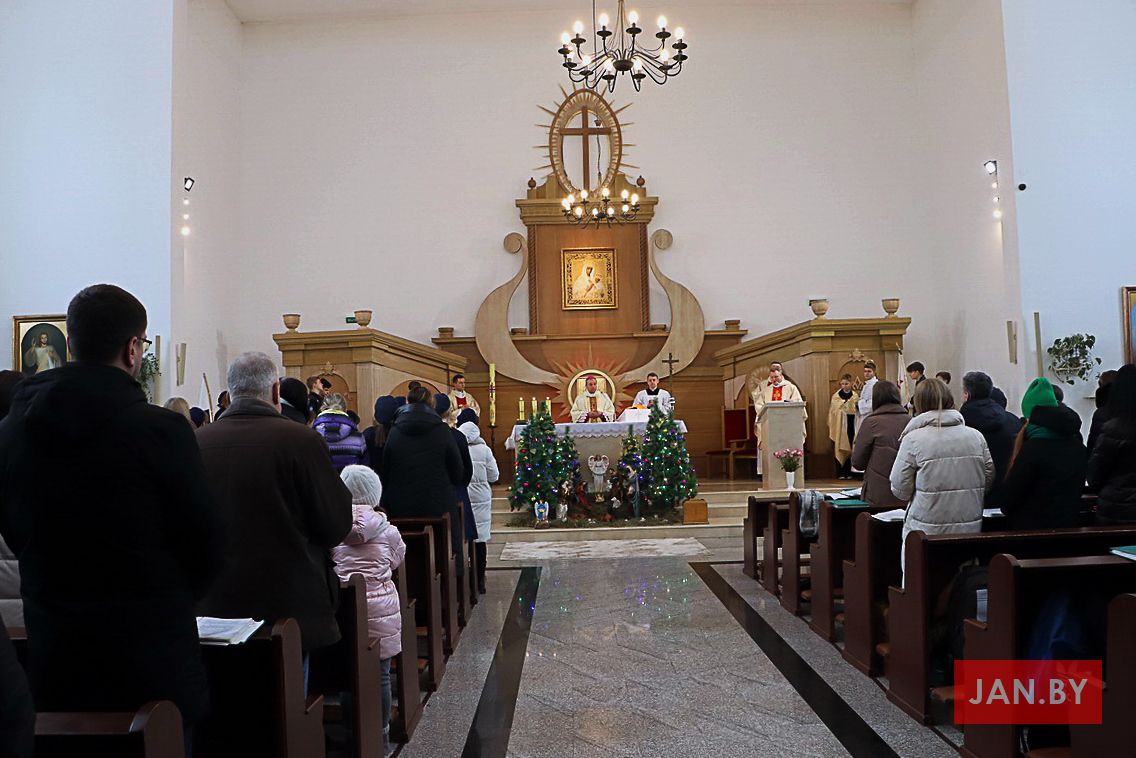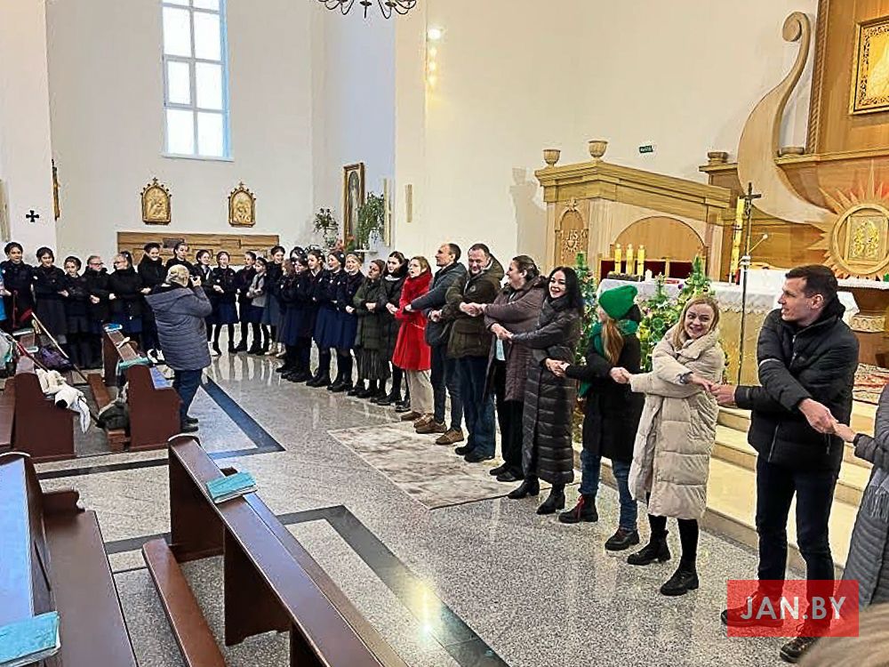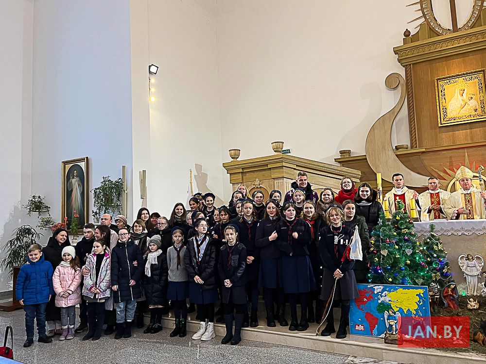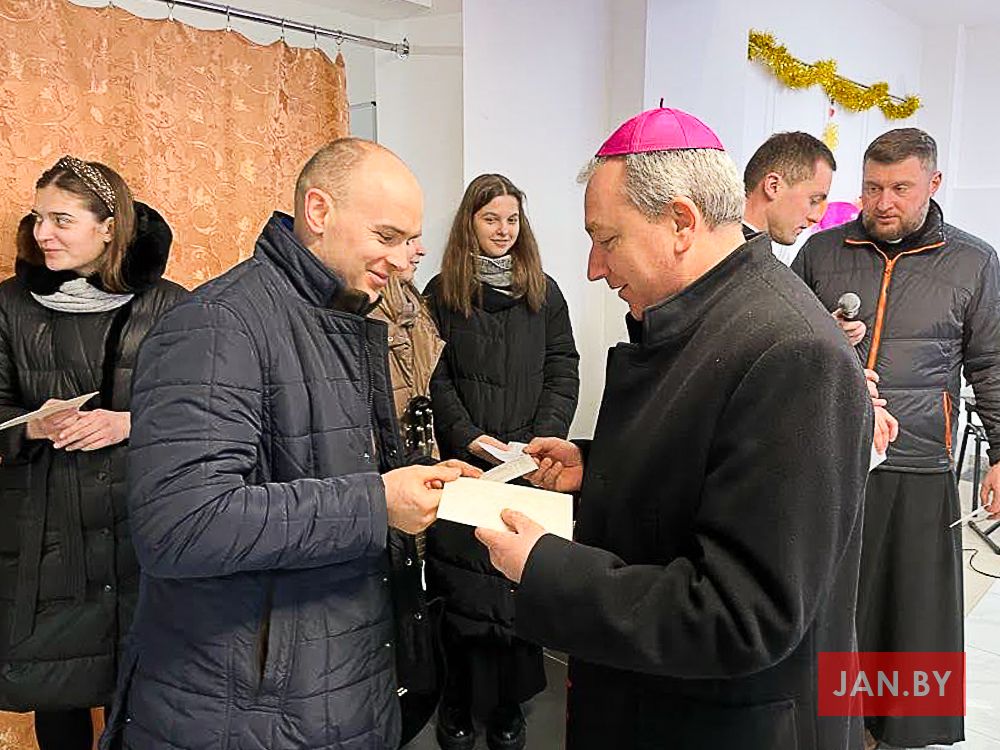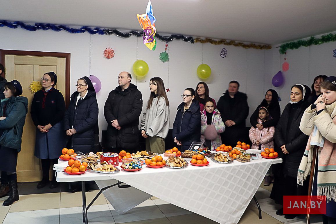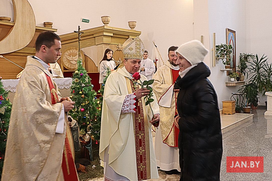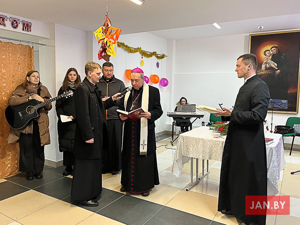 Другая частка святкавання адбывалася ў дольным касцёле. Біскуп Юрый благаславіў аплаткі, пасля чаго пілігрымы віншавалі адзін аднаго са святамі. Гурт Jolly Green ствараў святочную атмасферу, спяваючы калядкі розных краін свету. Затым быў паказаны фільм, у якім сабраныя ўспаміны з пілігрымкі.