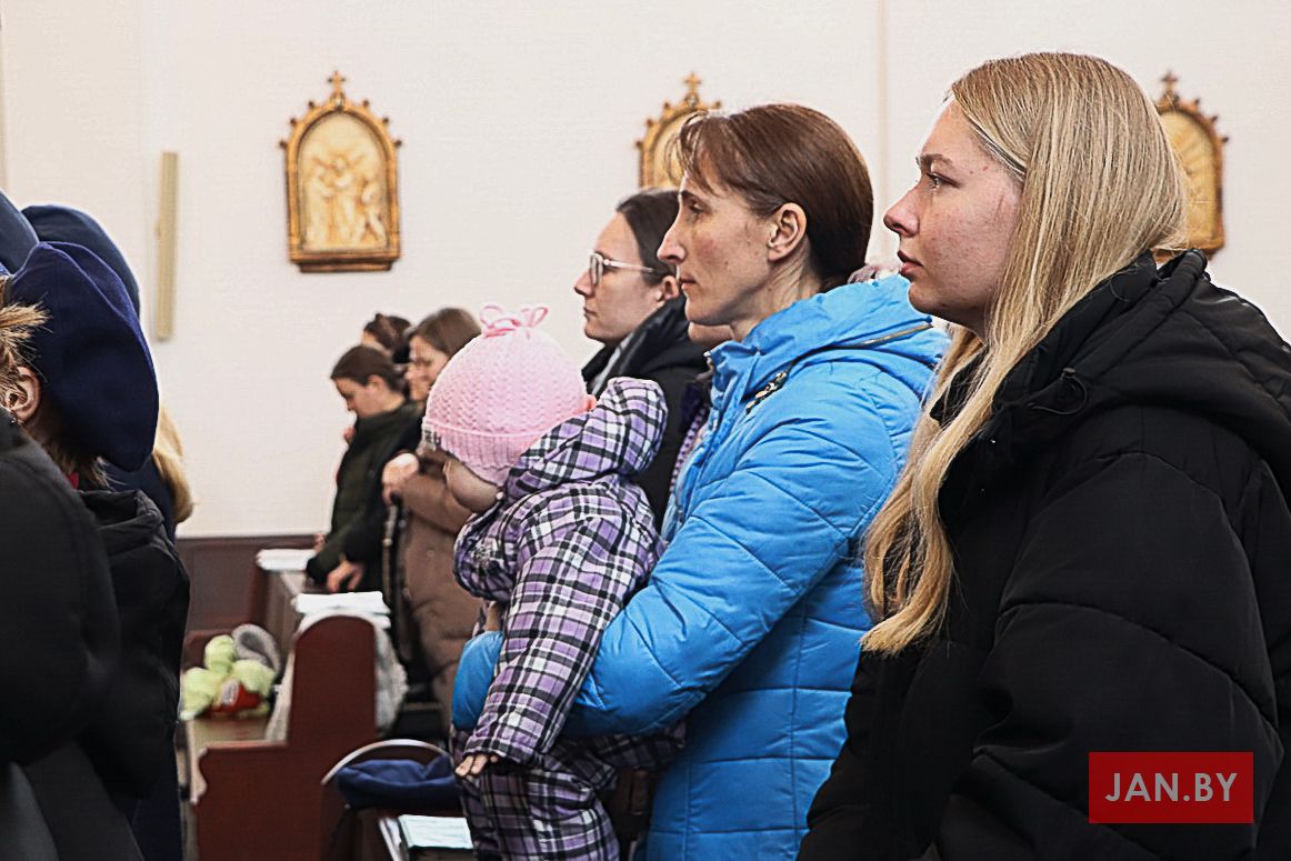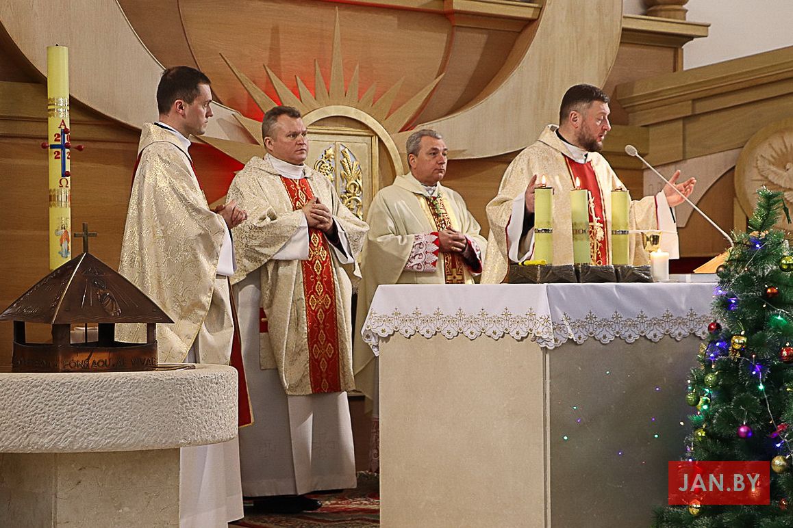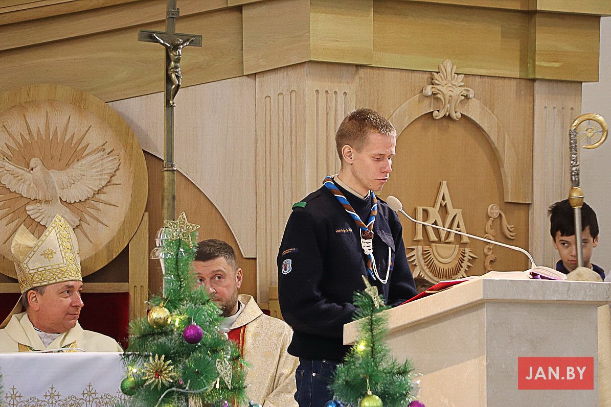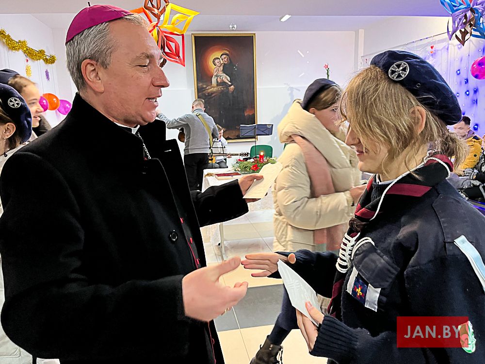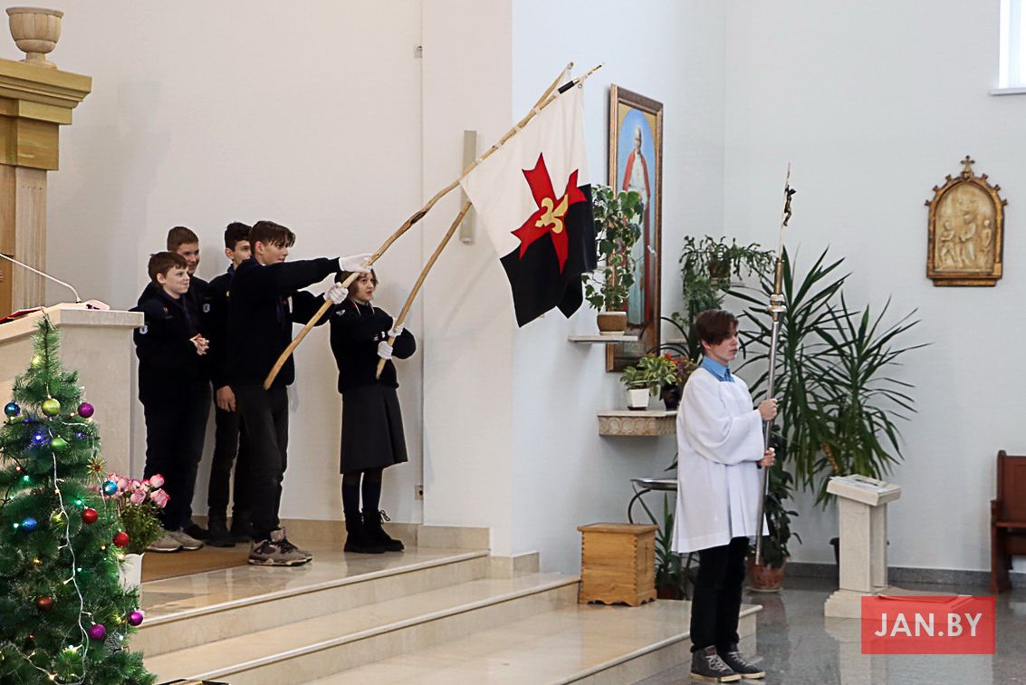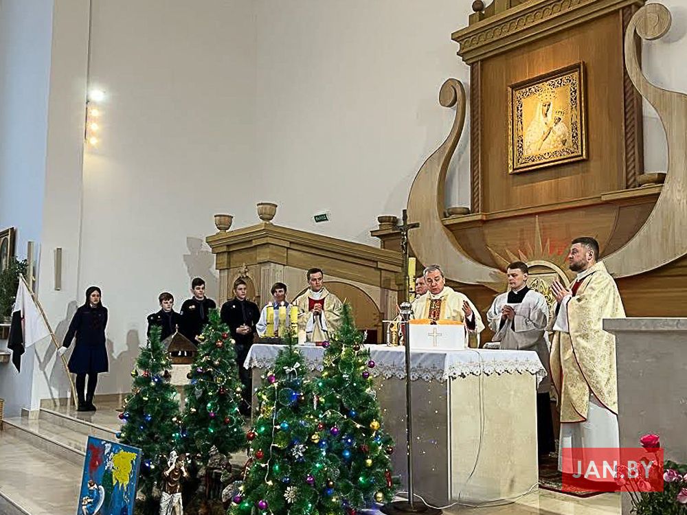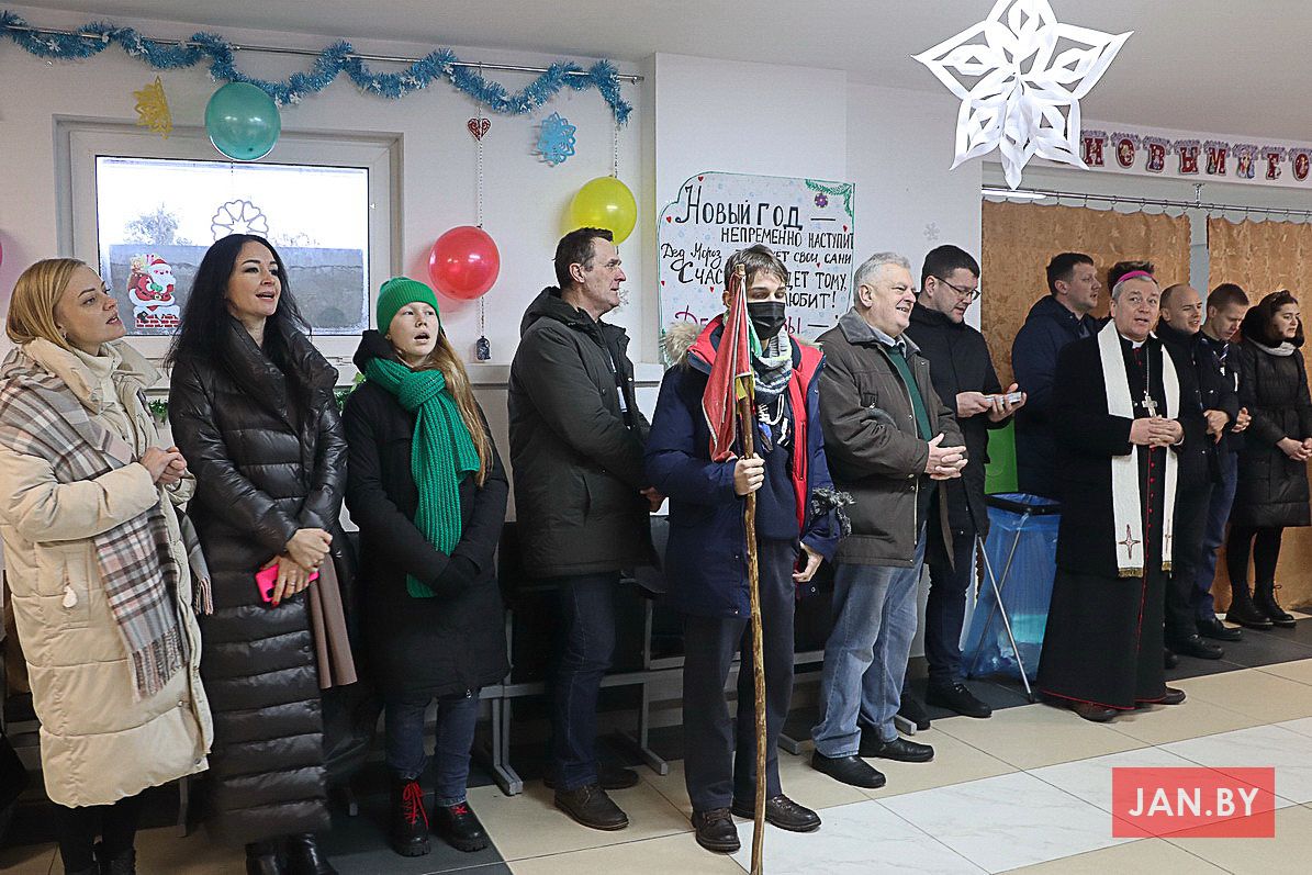 Другая частка святкавання адбывалася ў дольным касцёле. Біскуп Юрый благаславіў аплаткі, пасля чаго пілігрымы віншавалі адзін аднаго са святамі. Гурт Jolly Green ствараў святочную атмасферу, спяваючы калядкі розных краін свету. Затым быў паказаны фільм, у якім сабраныя ўспаміны з пілігрымкі.