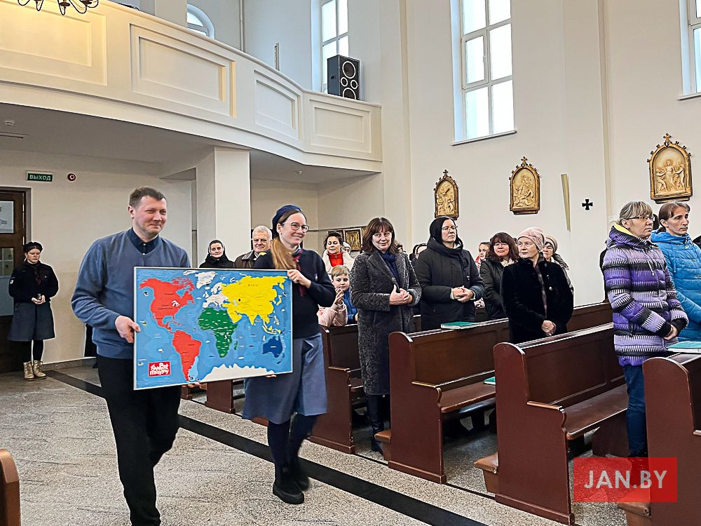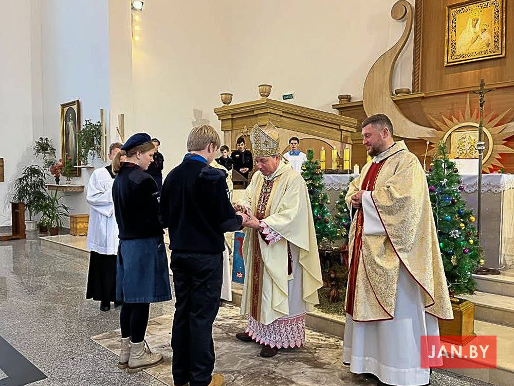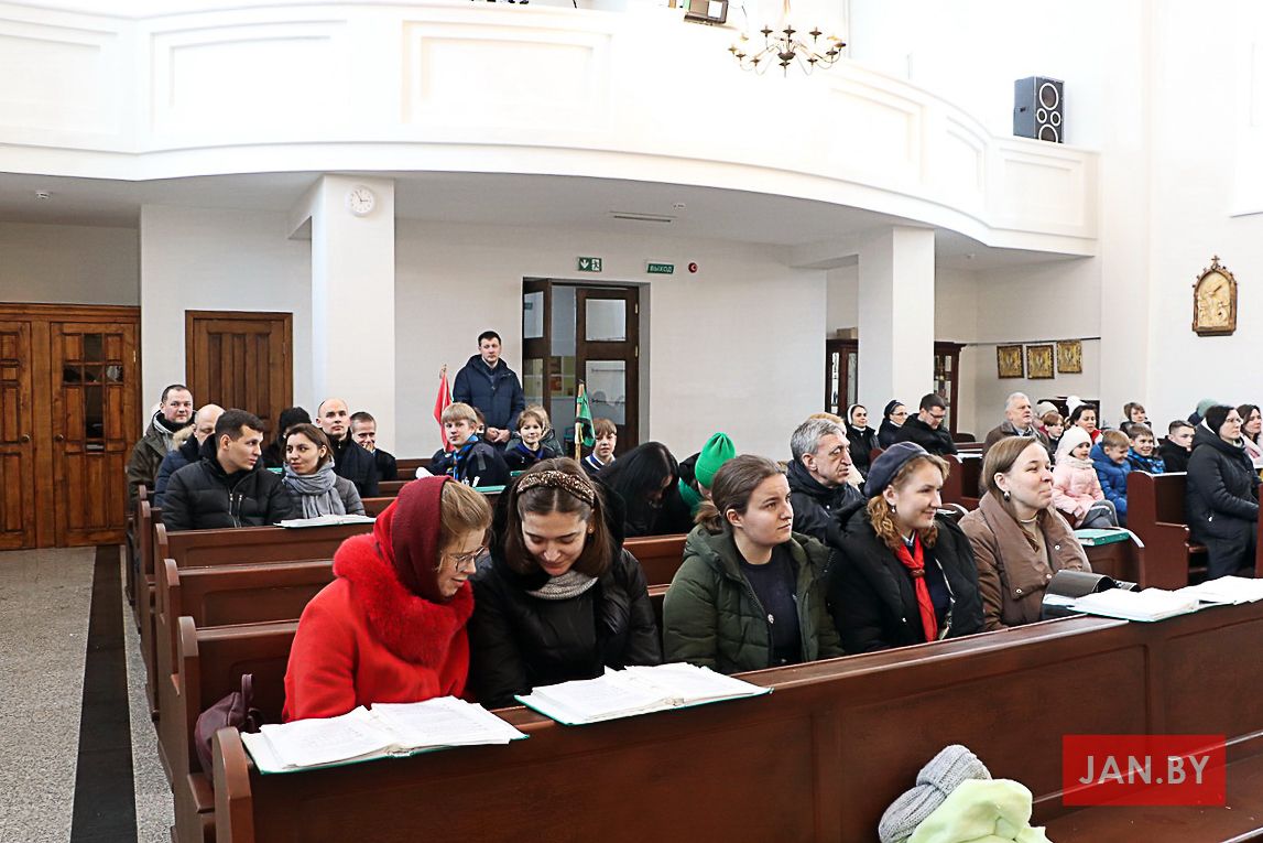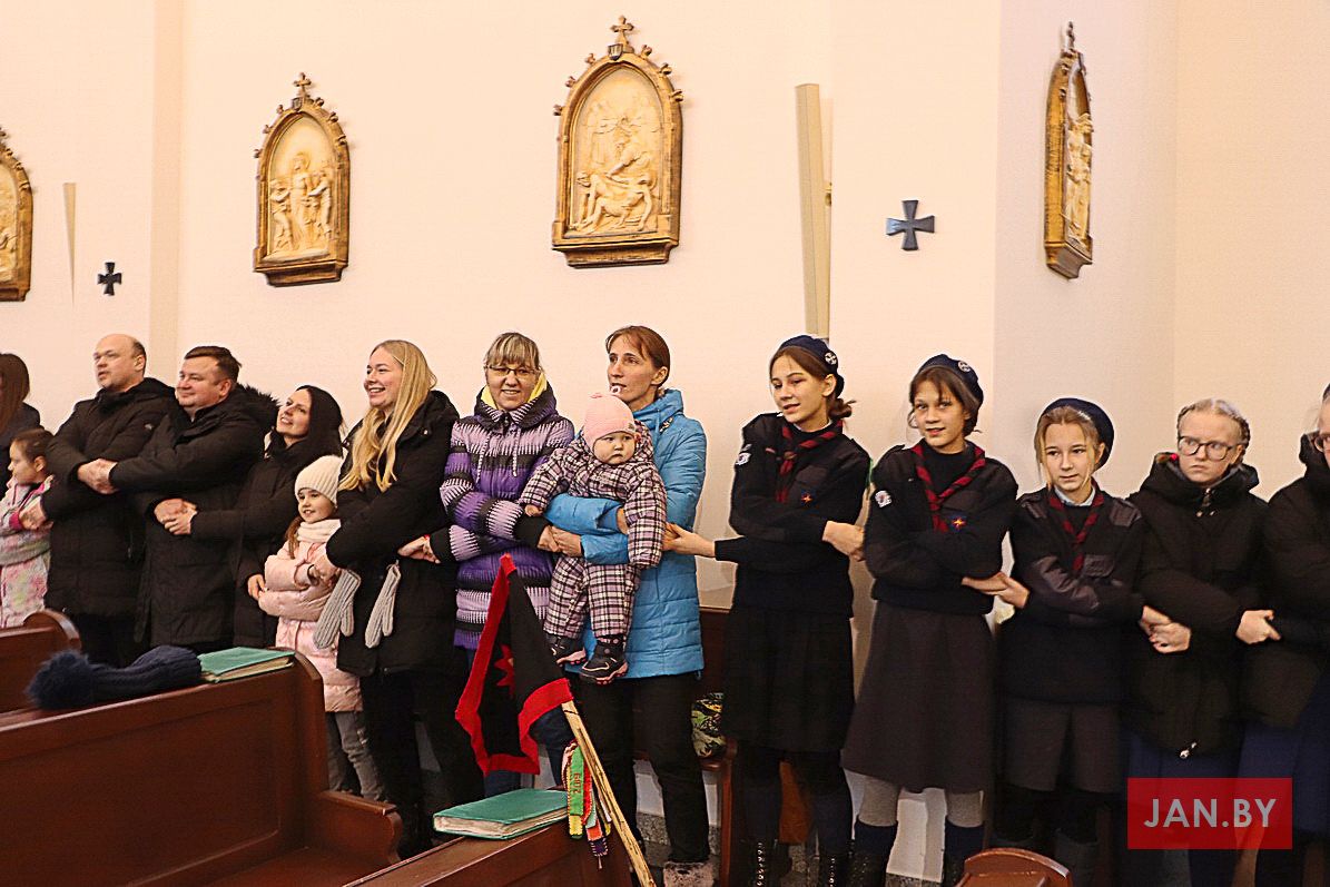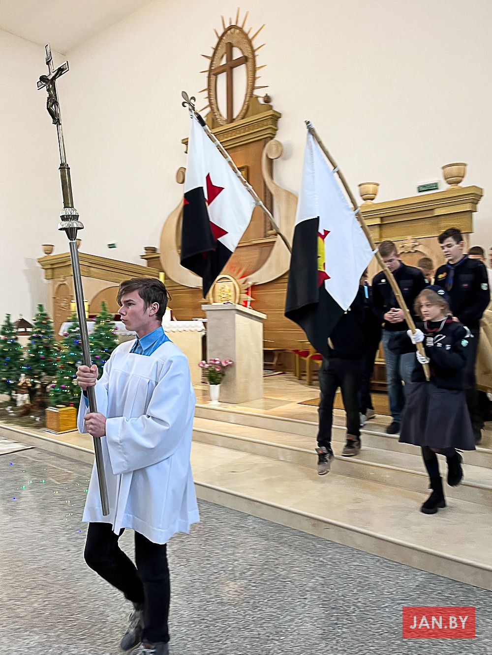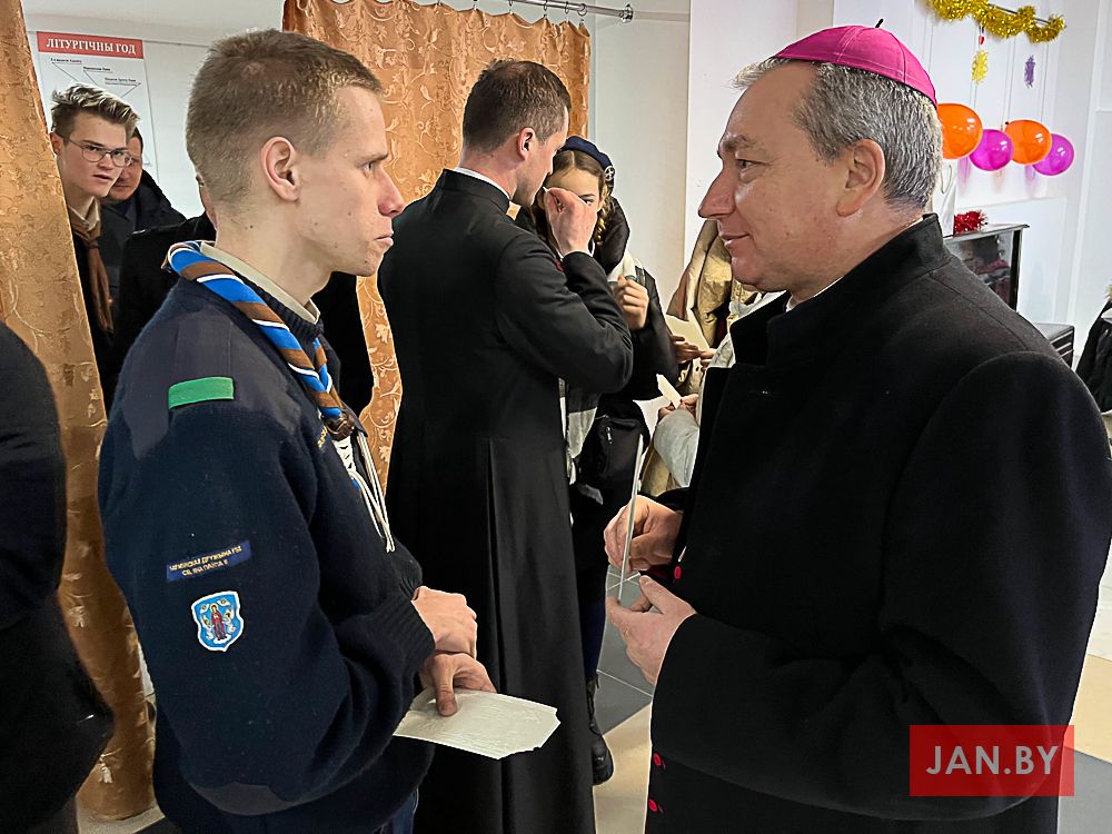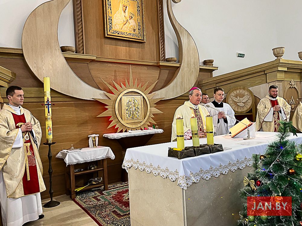 Другая частка святкавання адбывалася ў дольным касцёле. Біскуп Юрый благаславіў аплаткі, пасля чаго пілігрымы віншавалі адзін аднаго са святамі. Гурт Jolly Green ствараў святочную атмасферу, спяваючы калядкі розных краін свету. Затым быў паказаны фільм, у якім сабраныя ўспаміны з пілігрымкі.